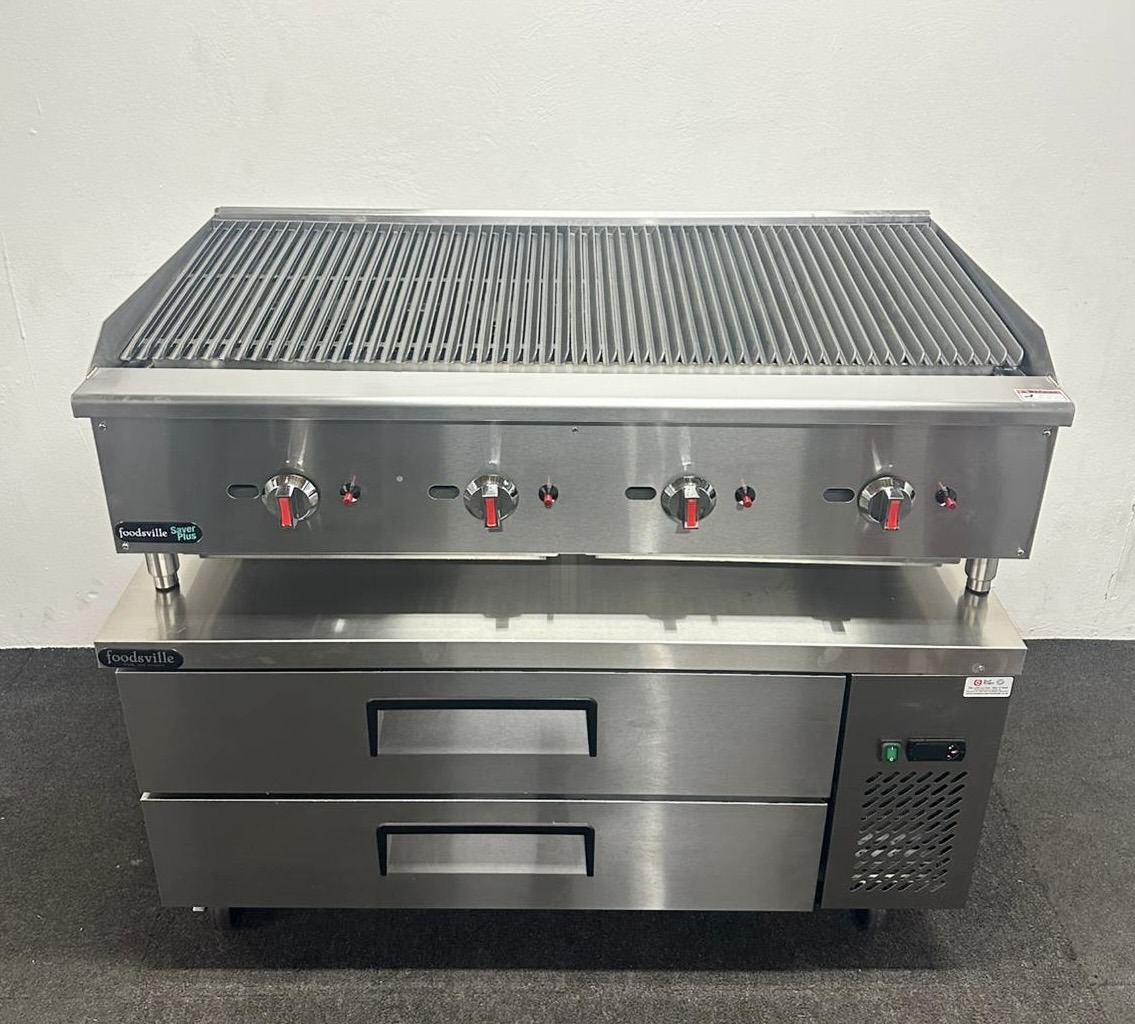 FOODSVILLE COMBINATION: NEW Gas Chargrill On Double Drawer CHILLED Chef Base