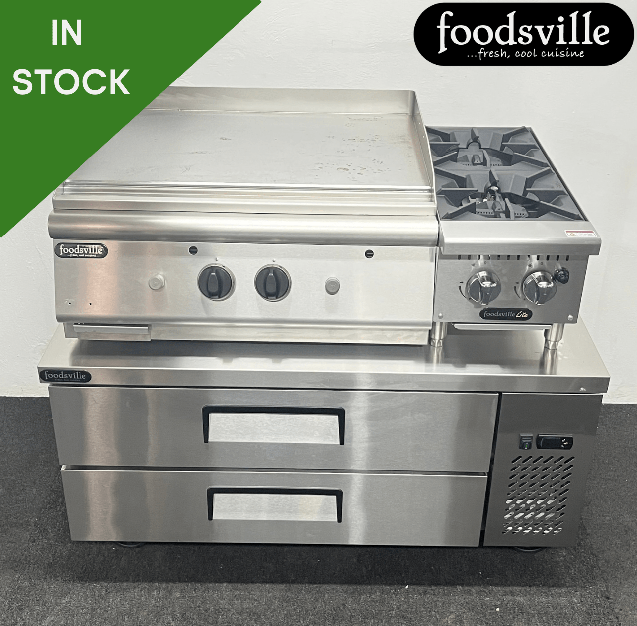 FOODSVILLE COMBINATION: NEW Gas Griddle & NEW Gas Hob On CHILLED Double Drawer Chef Base