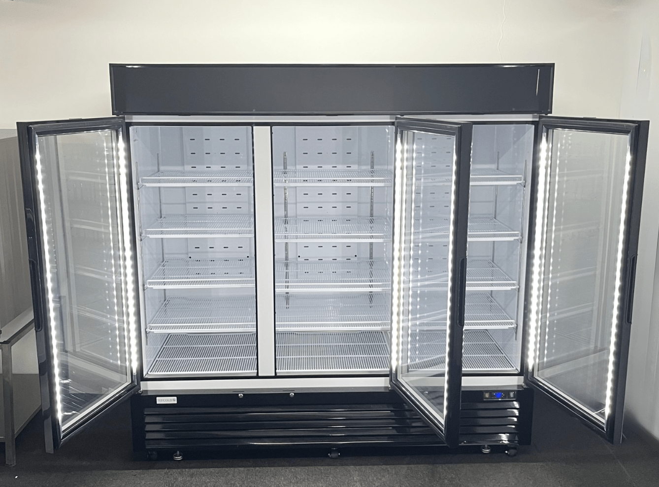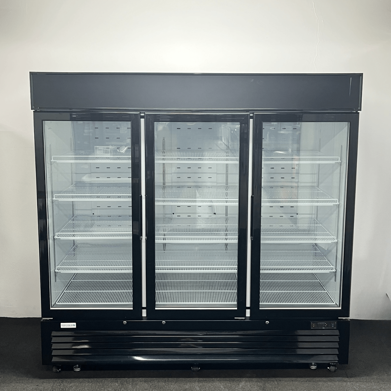 Hardly Used Tefcold 2060mm Upright Triple Glass Fronted Display Fridge, On Wheels