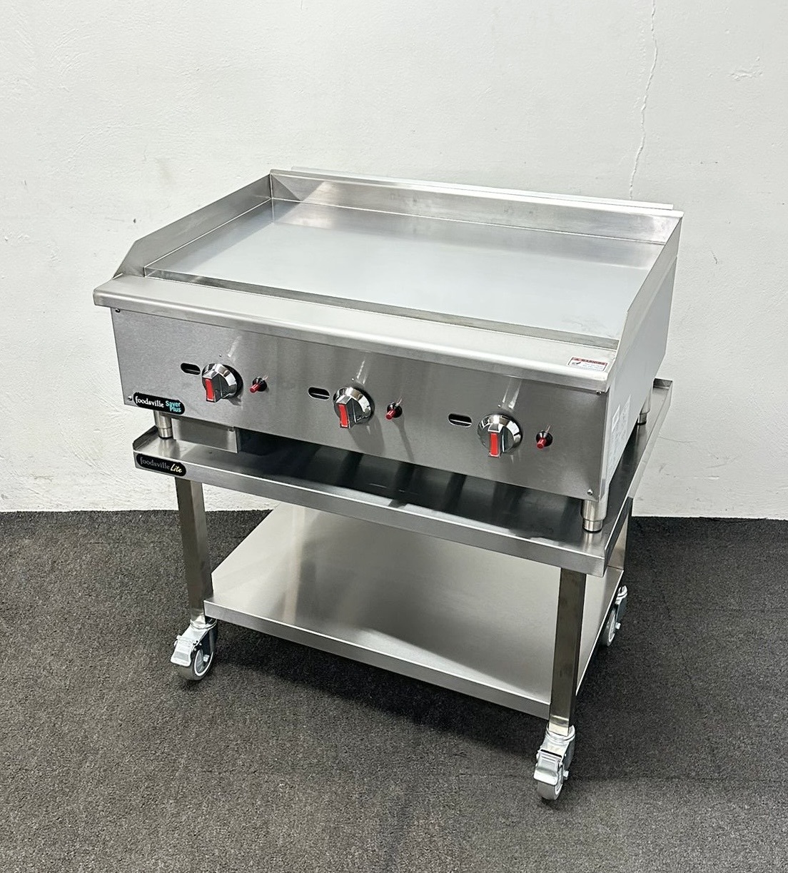 NEW Foodsville Saver Plus 915mm Heavy Duty Chrome Top Countertop Griddle, On Mobile Stand – Available On Natural Gas Or LPG