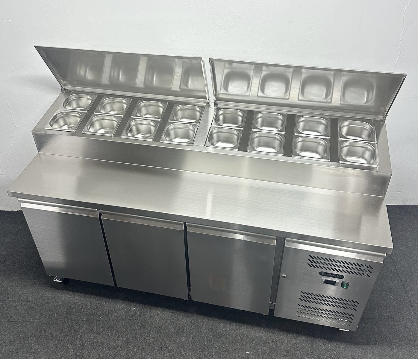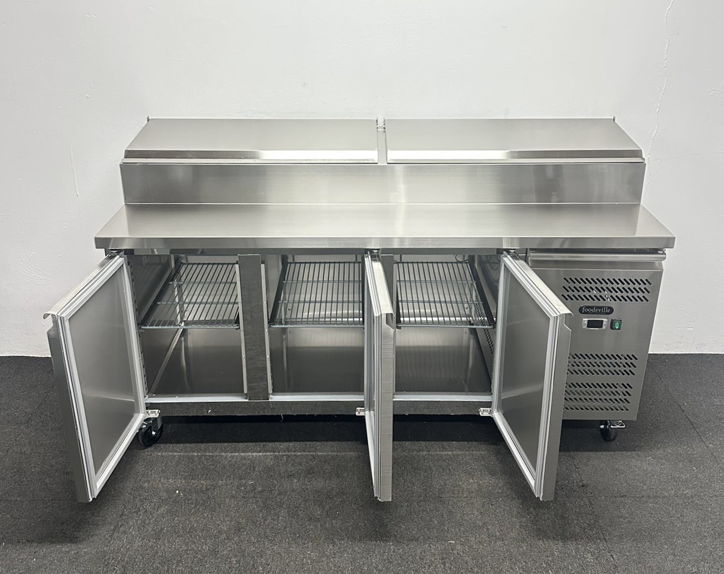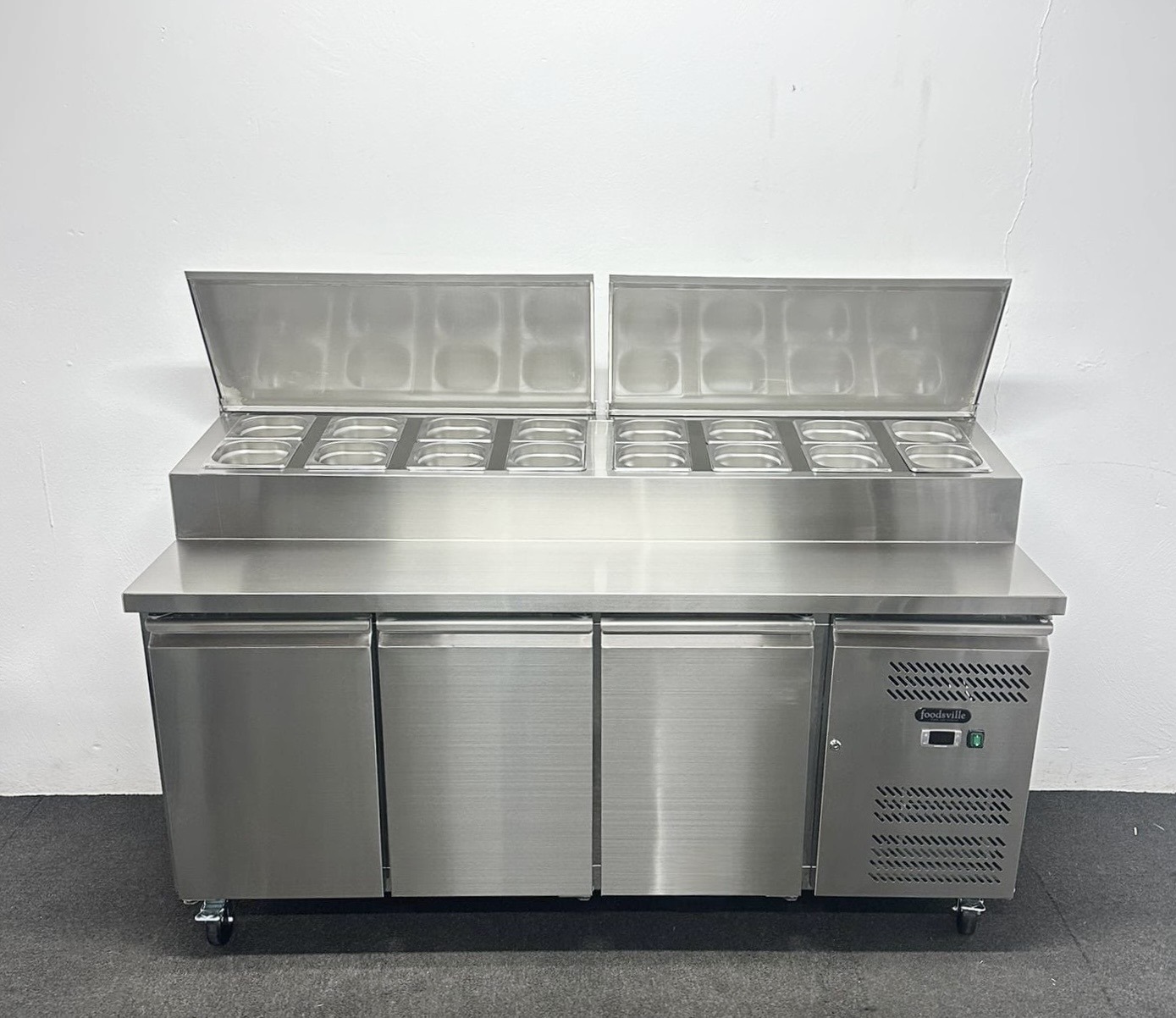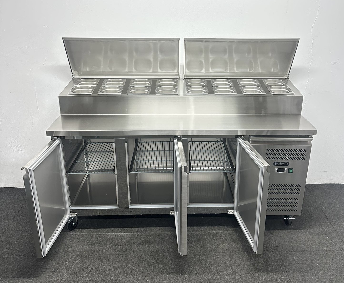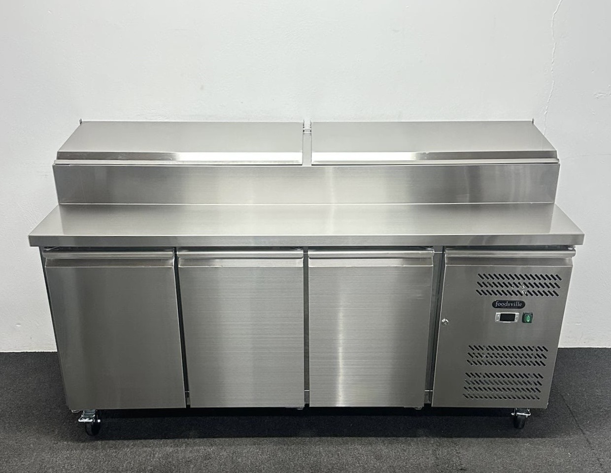 NEW Foodsville 1795mm 3 Door Prep Counter Fridge, On Wheels – Includes G/N Containers!