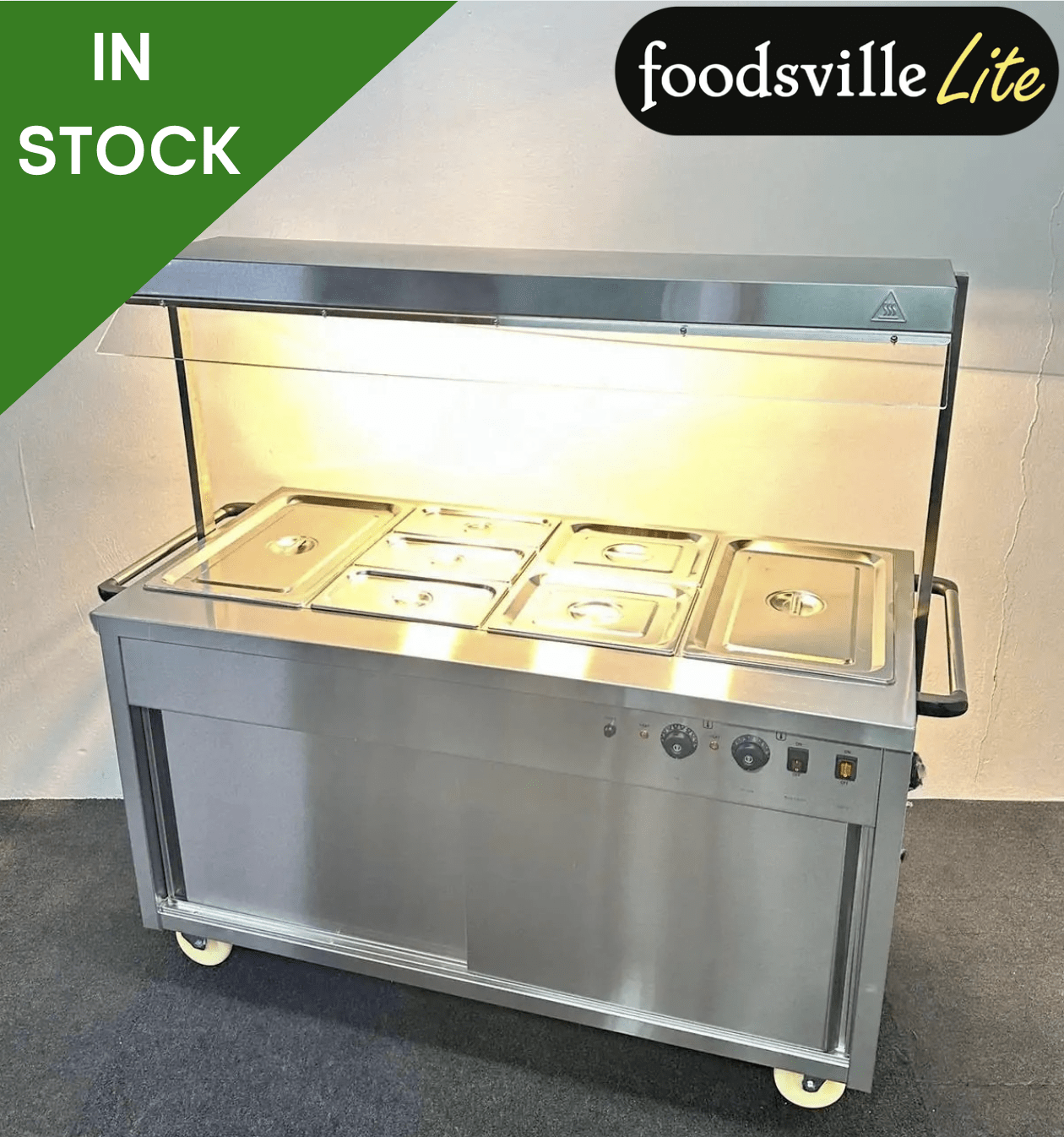 NEW Foodsville Lite 4 x 1/1 GN Wet Well Bain Marie & Hot Cupboard With Heated Overgantry, On Wheels