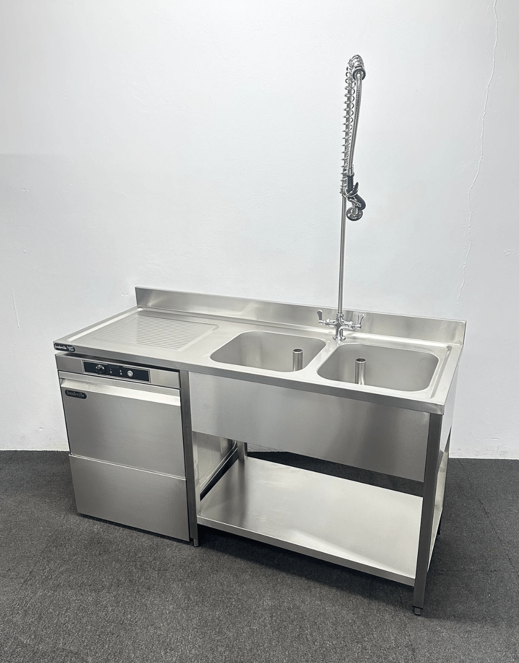 - Dishwasher sink with shower spray and undershelf