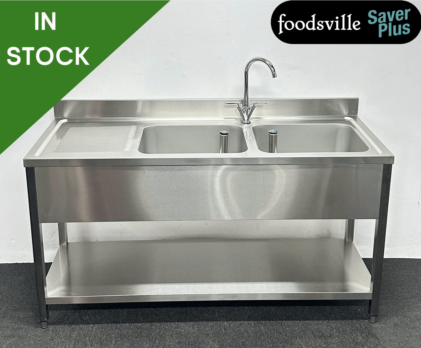 NEW Foodsville Saver Plus 1600mm Stainless Steel Double Bowl Sink With Undershelf – Left Hand Drainer. Includes Taps!