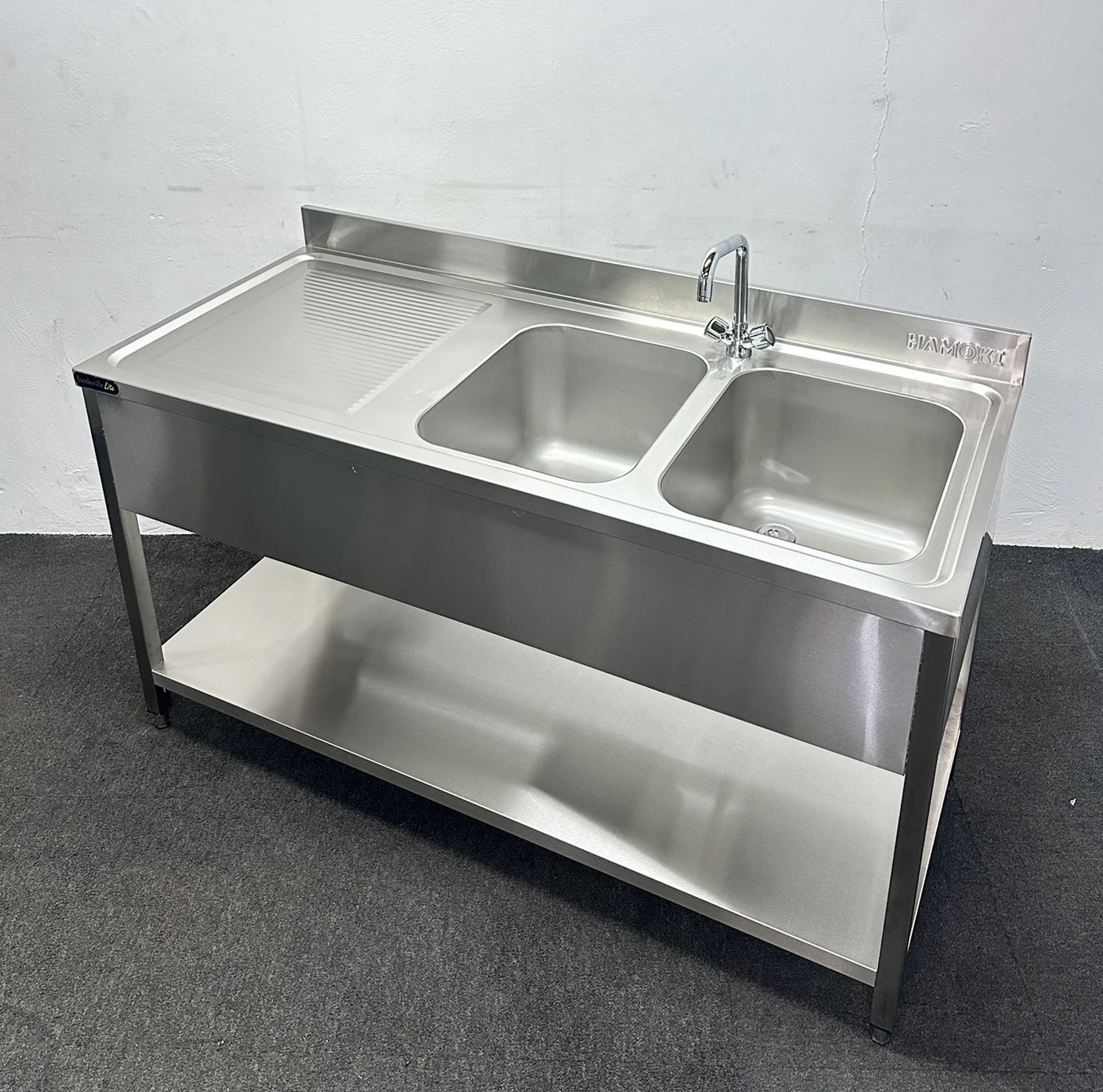 NEW Foodsville Saver Plus 1600mm Stainless Steel Double Bowl Sink With Undershelf – Left Hand Drainer. Includes Taps!