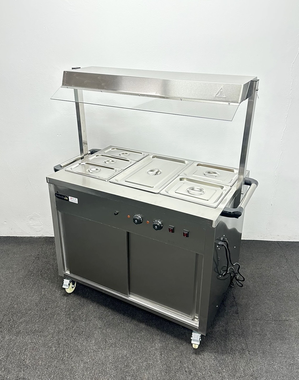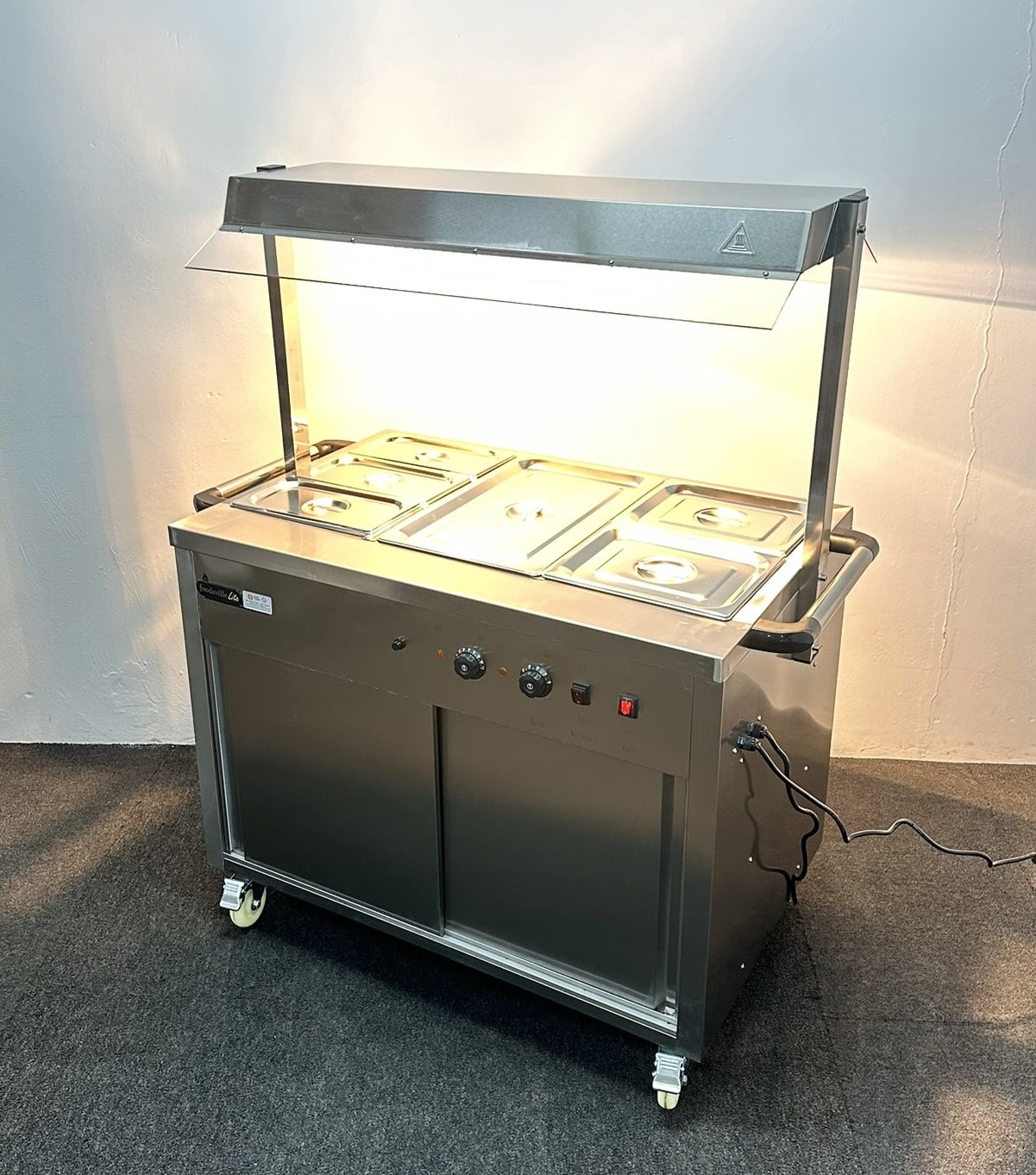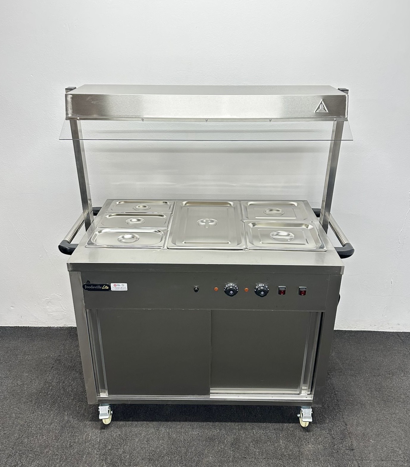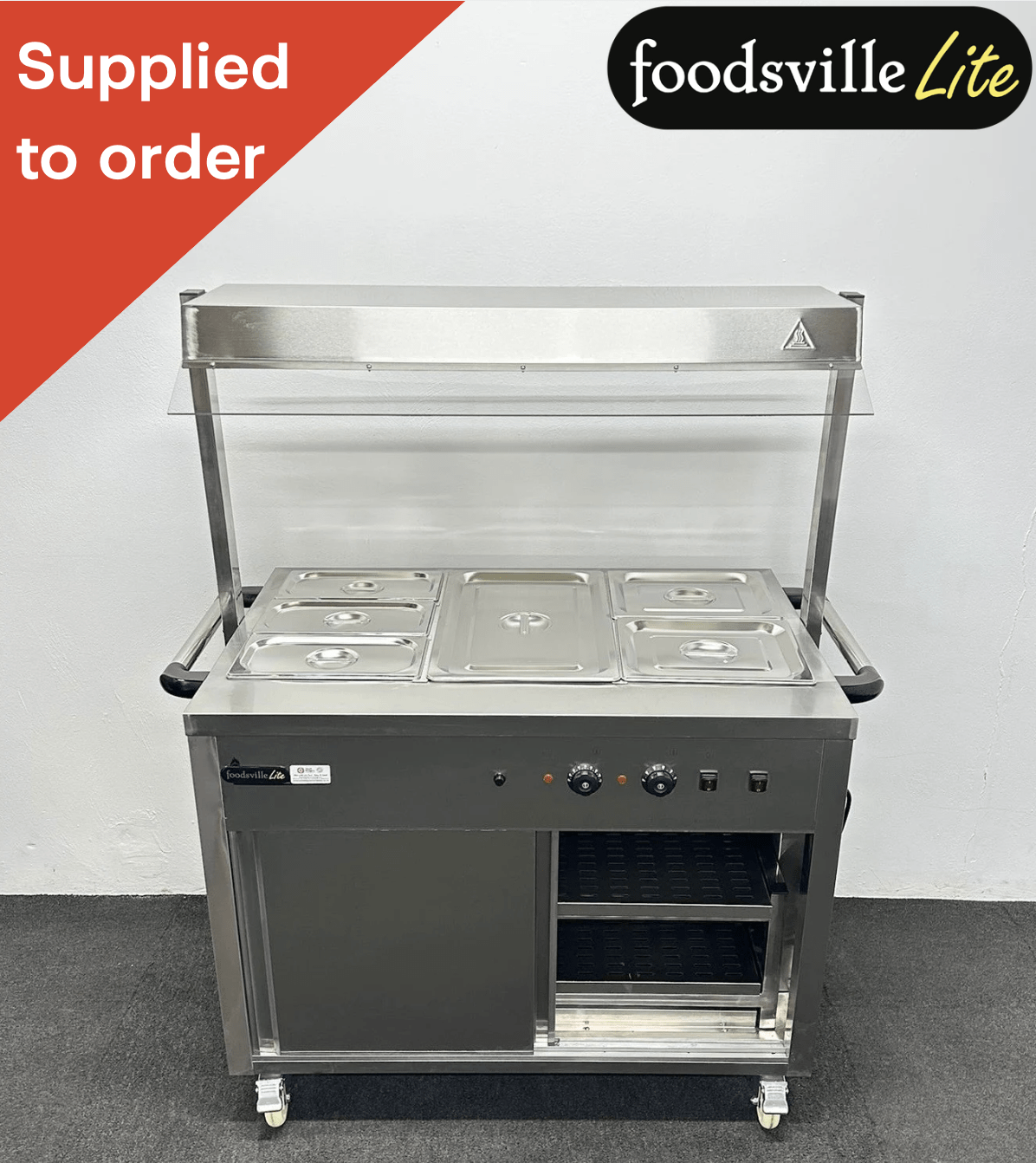 NEW Foodsville Lite 3 x 1/1 GN Wet Well Bain Marie & Hot Cupboard With Heated Overgantry, On Wheels