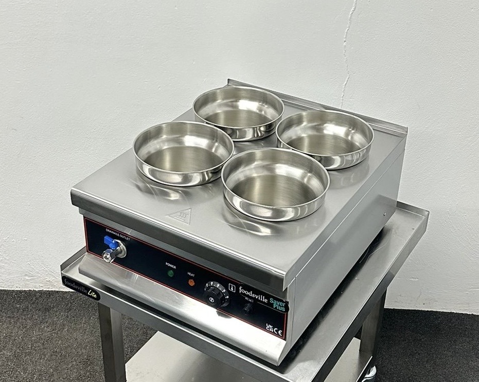 NEW Foodsville Saver Plus 4 Pot Bain Marie With Drain Tap On Mobile Stand – 13 Amp Plug In & Go!
