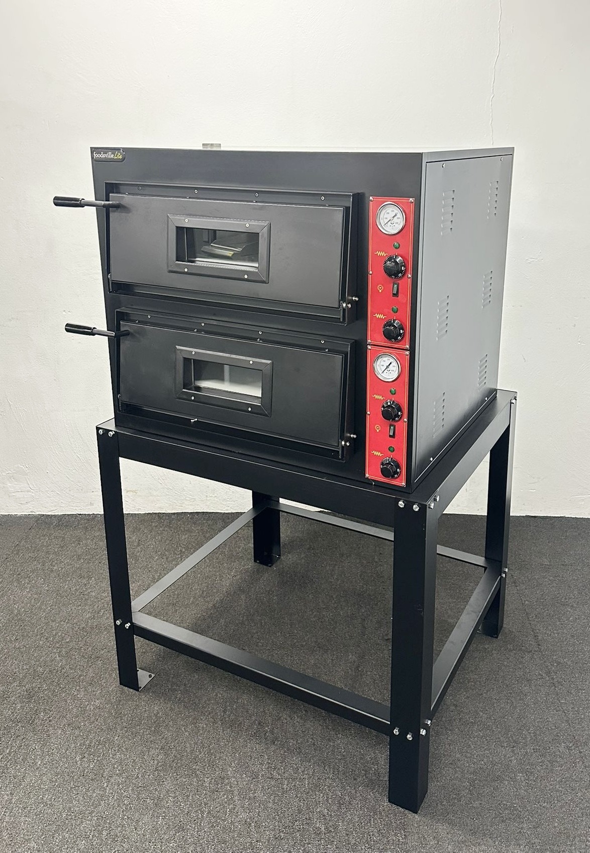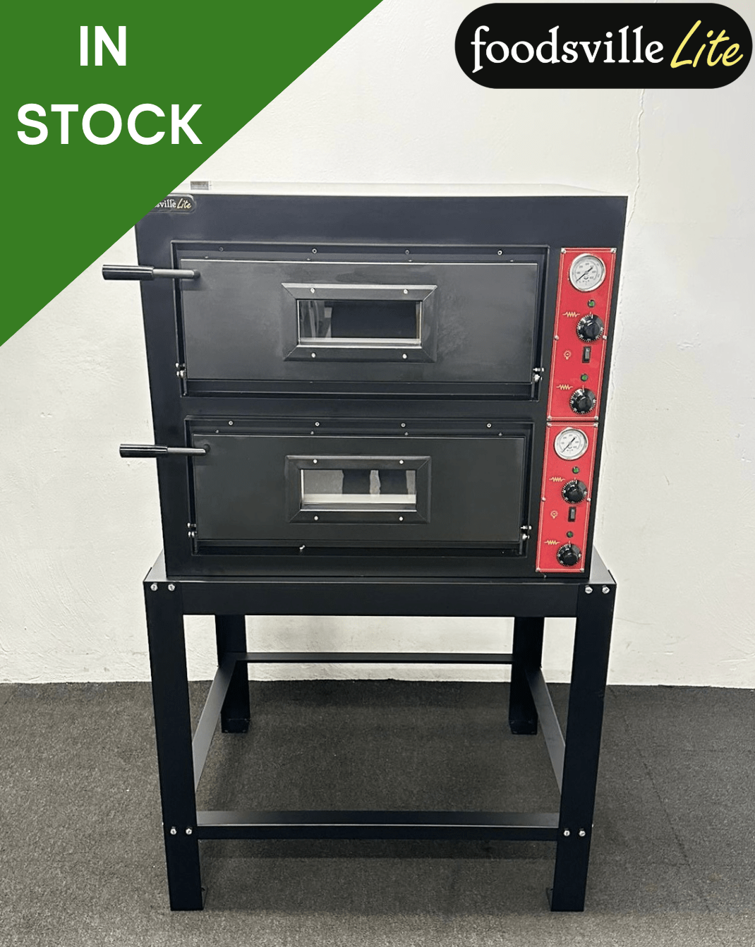 NEW Foodsville 975mm Twin Deck 4+4 Stone Deck Pizza Ovens, On Stand – Single Phase Electric
