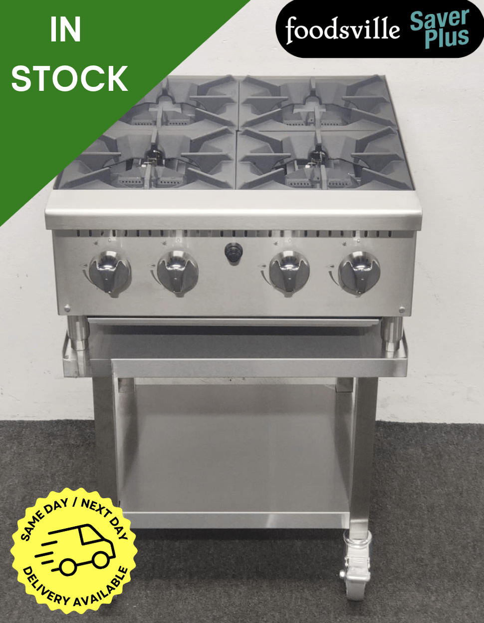 NEW Foodsville Saver Plus Heavy Duty Four Burner Countertop Hob On Mobile Stand – Available on Natural Gas or LPG