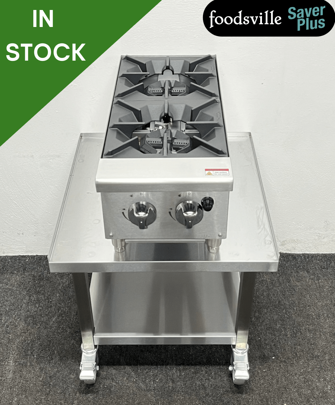 NEW Foodsville Saver Plus Heavy Duty Two Burner Countertop Hob On Mobile Stainless Steel Stand – Available On Natural Gas Or LPG