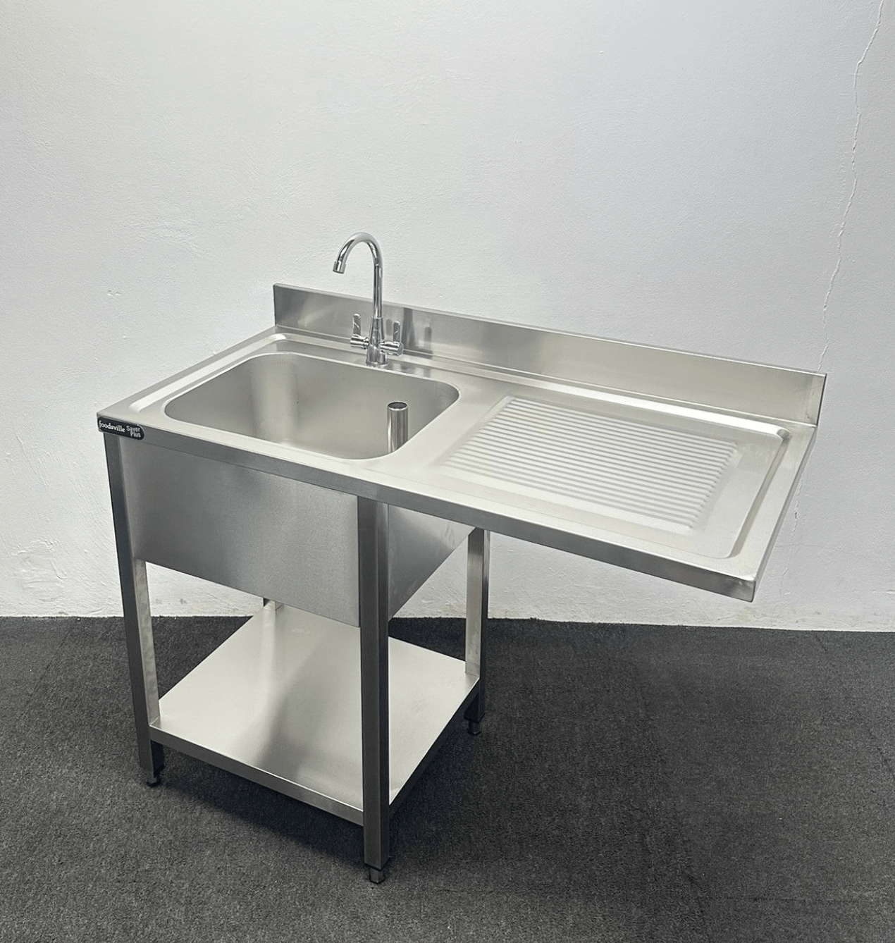 NEW Foodsville Saver Plus 1200mm Stainless Steel Single Bowl Dishwasher Sink, With Undershelf – Right Hand Drainer. Includes Taps!