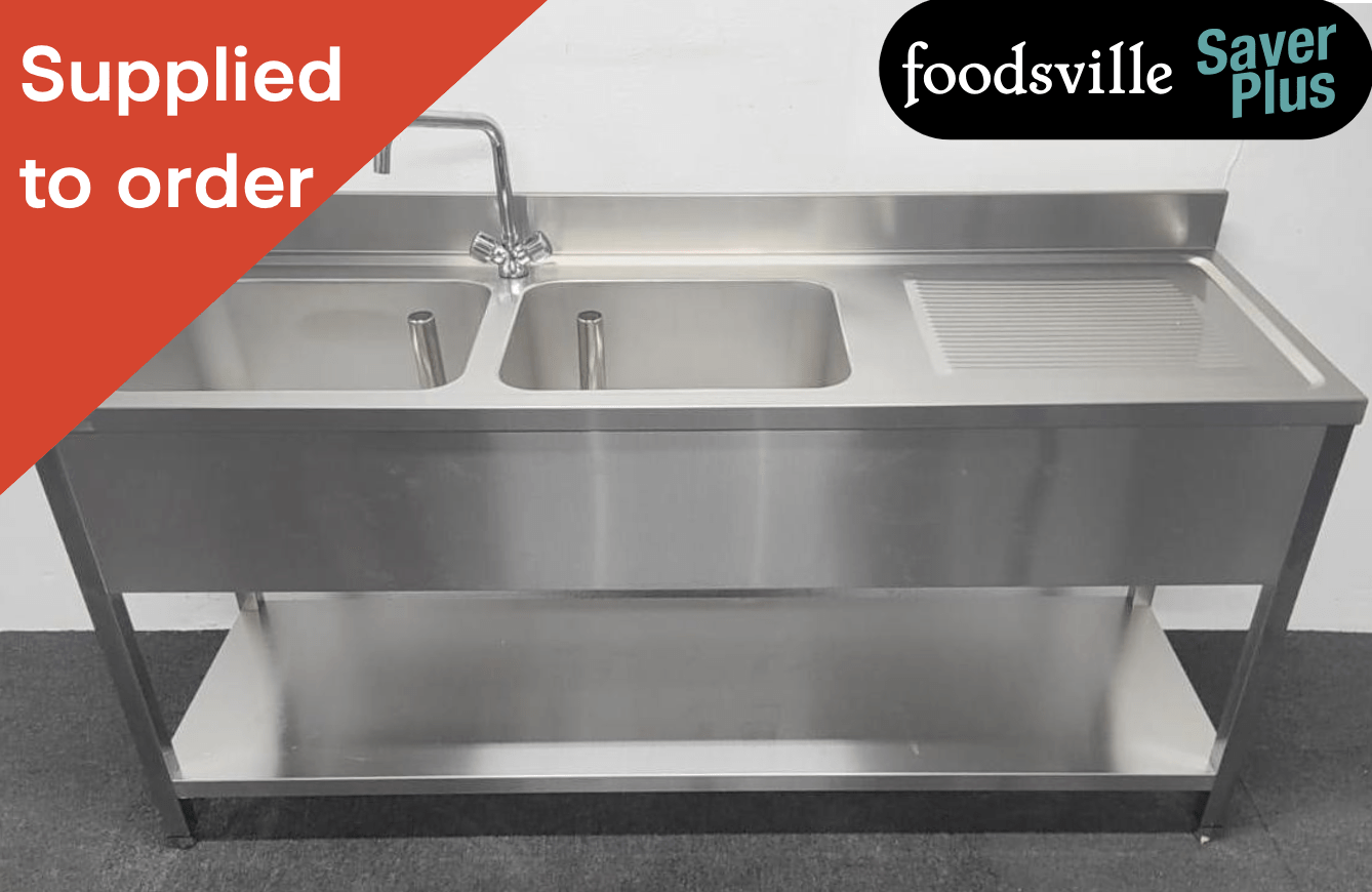 NEW Foodsville Saver Plus 1800mm Stainless Steel Double Bowl Sink With Undershelf – Right Hand Drainer. Includes Taps!
