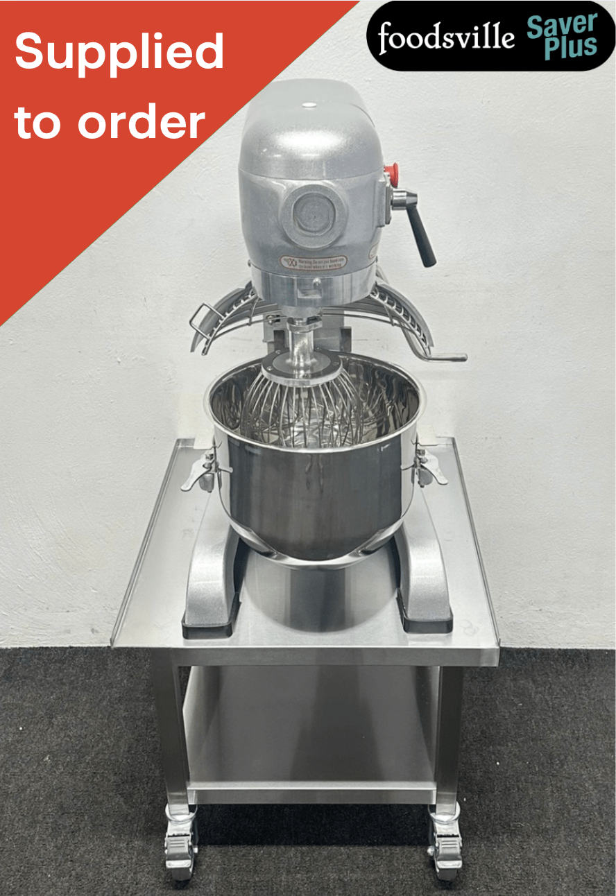 NEW Foodsville Saver Plus 20 Litre Planetary Mixer with Stainless Steel Bowl, Whisk, Beater and Dough Hook, On Mobile Stand – 13 Amp Plug In & Go!