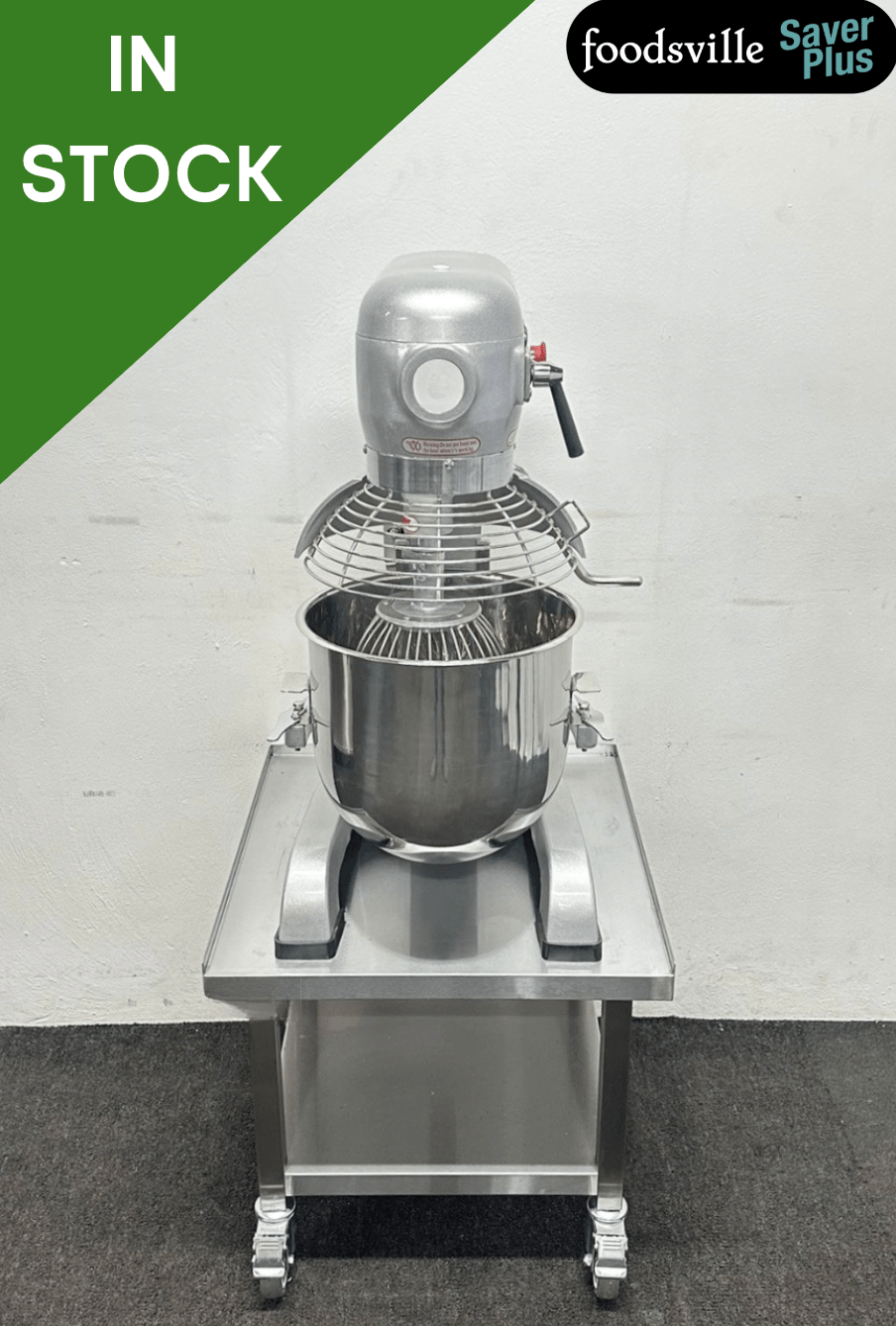 NEW Foodsville Saver Plus 30 Litre Planetary Mixer with Stainless Steel Bowl, Whisk, Beater and Dough Hook, On Mobile Stand – 13 Amp Plug In & Go!