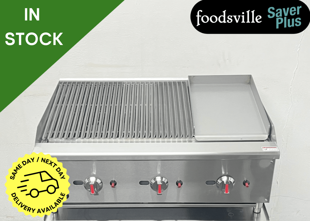 NEW Foodsville Saver Plus 900mm Countertop 2/3 Chargrill 1/3 Griddle – Available on Natural Gas or LPG