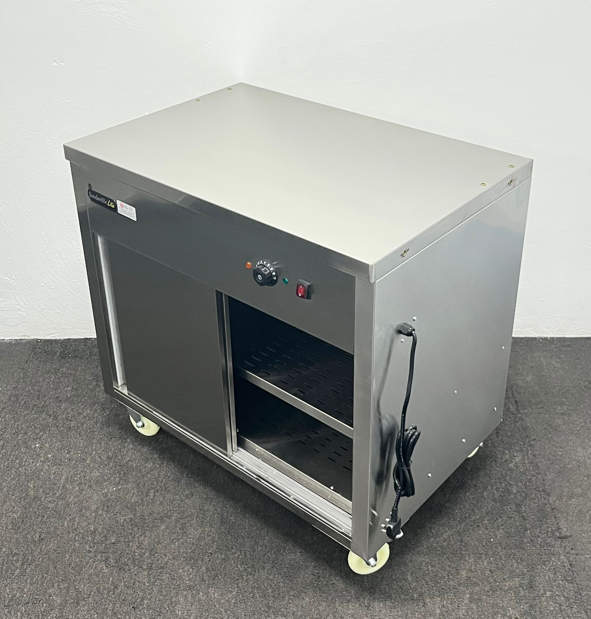 NEW Foodsville Saver Plus 900mm Stainless Steel Double Shelved Hot Cupboard, On Wheels