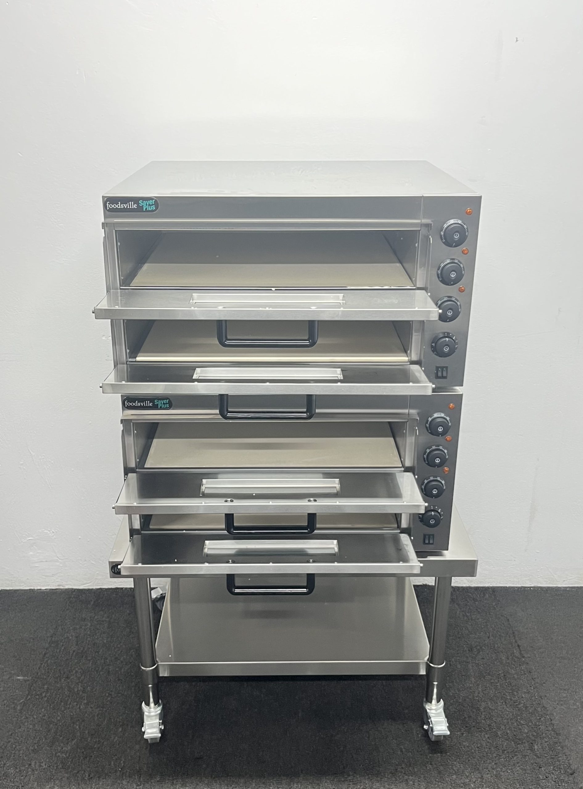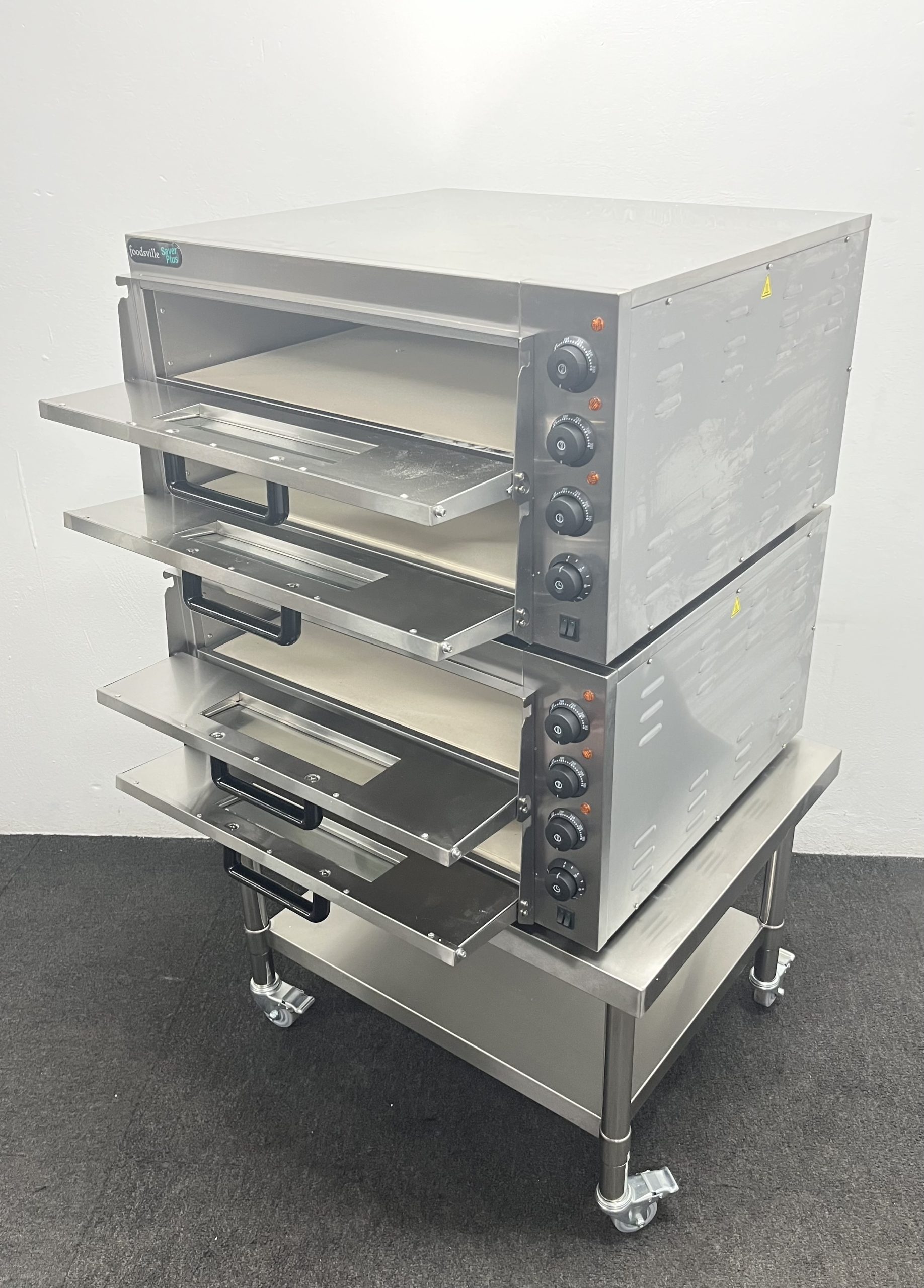 NEW Foodsville Lite 975mm 4+4 Double Stone Deck Pizza Oven, On Stand – Three Phase Electric