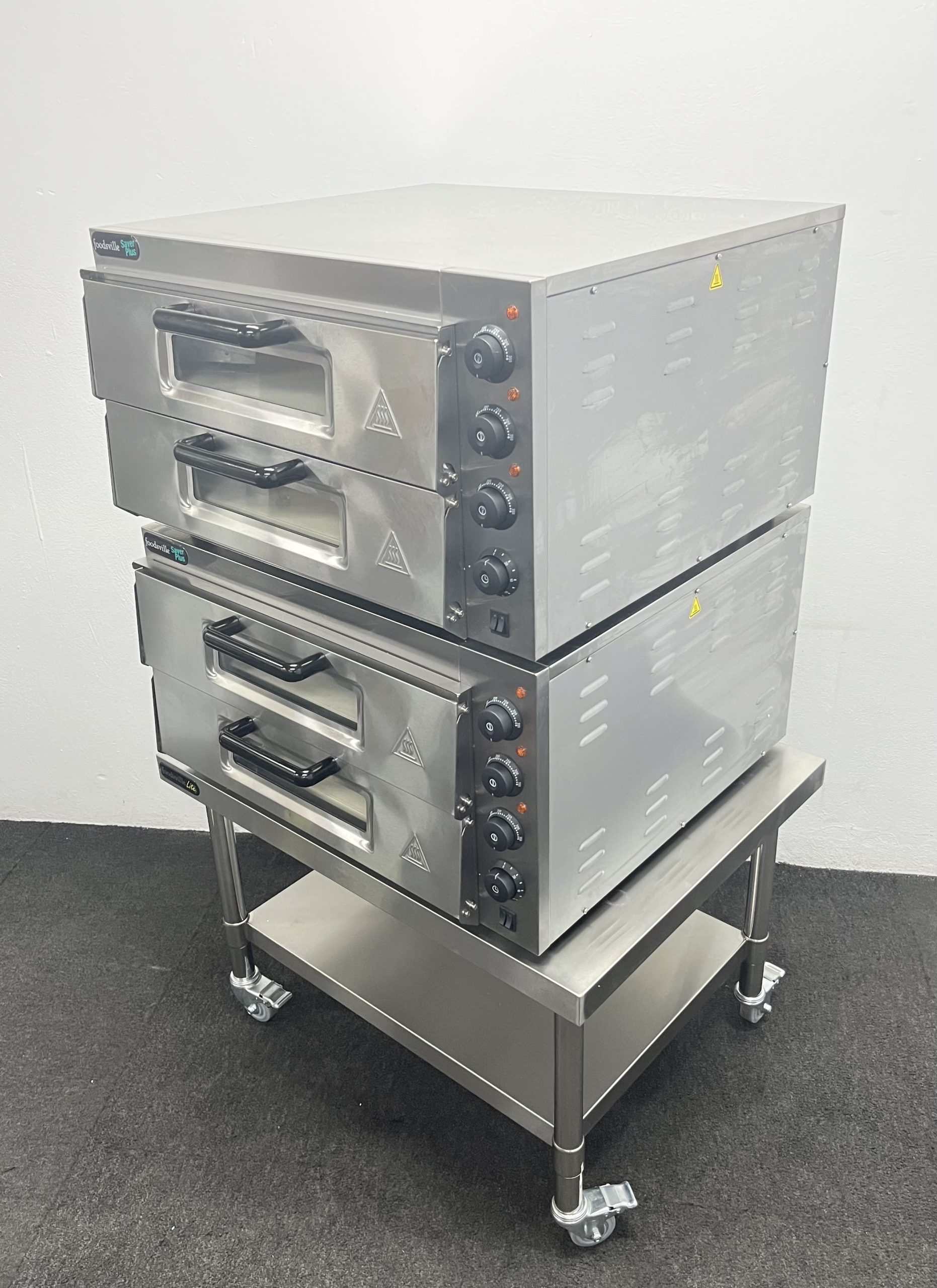 NEW Foodsville Saver Plus Double Stacked Twin 20″ Deck Pizza Oven, On Mobile Stand – 13 Amp Plug In & Go!