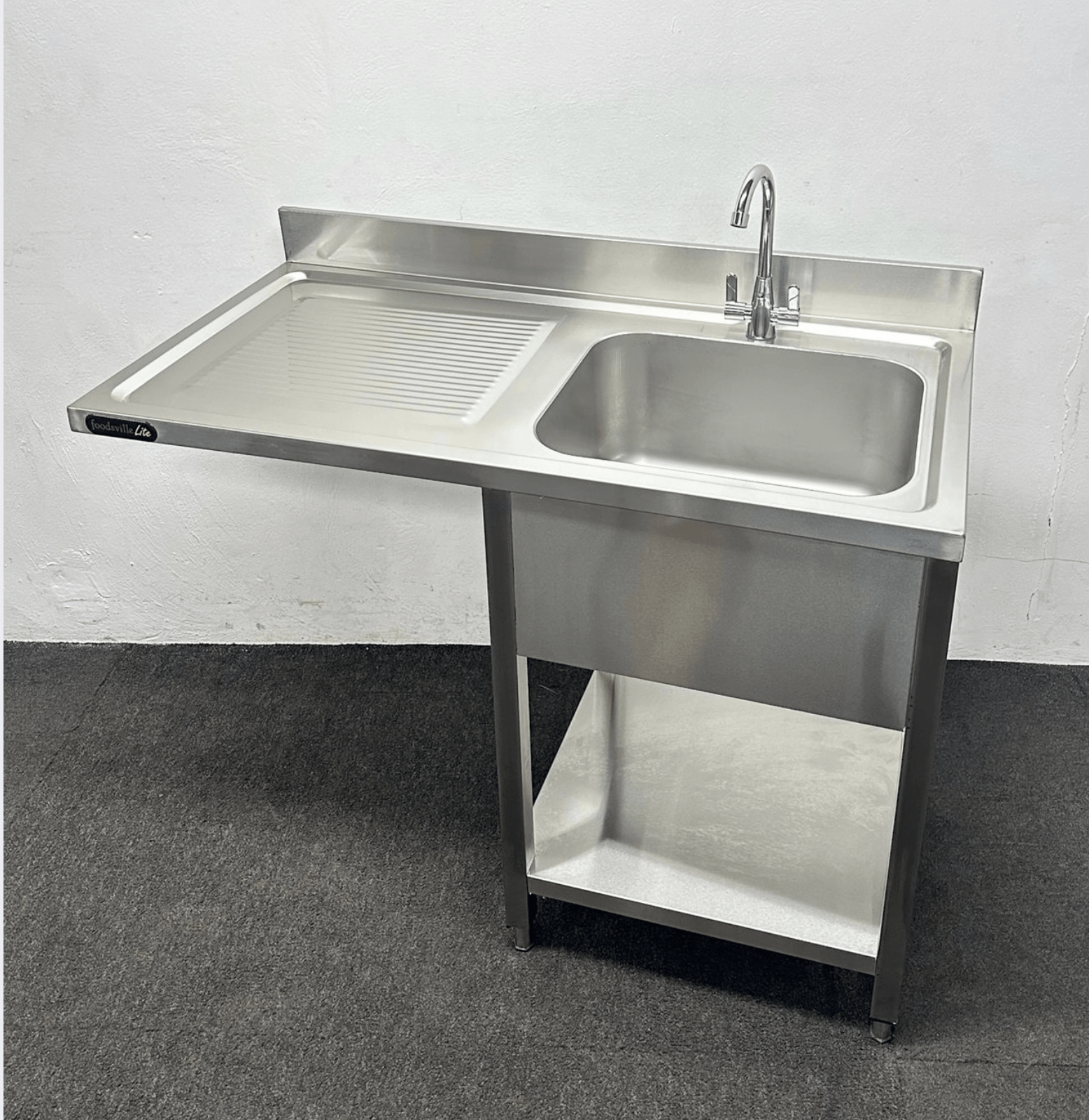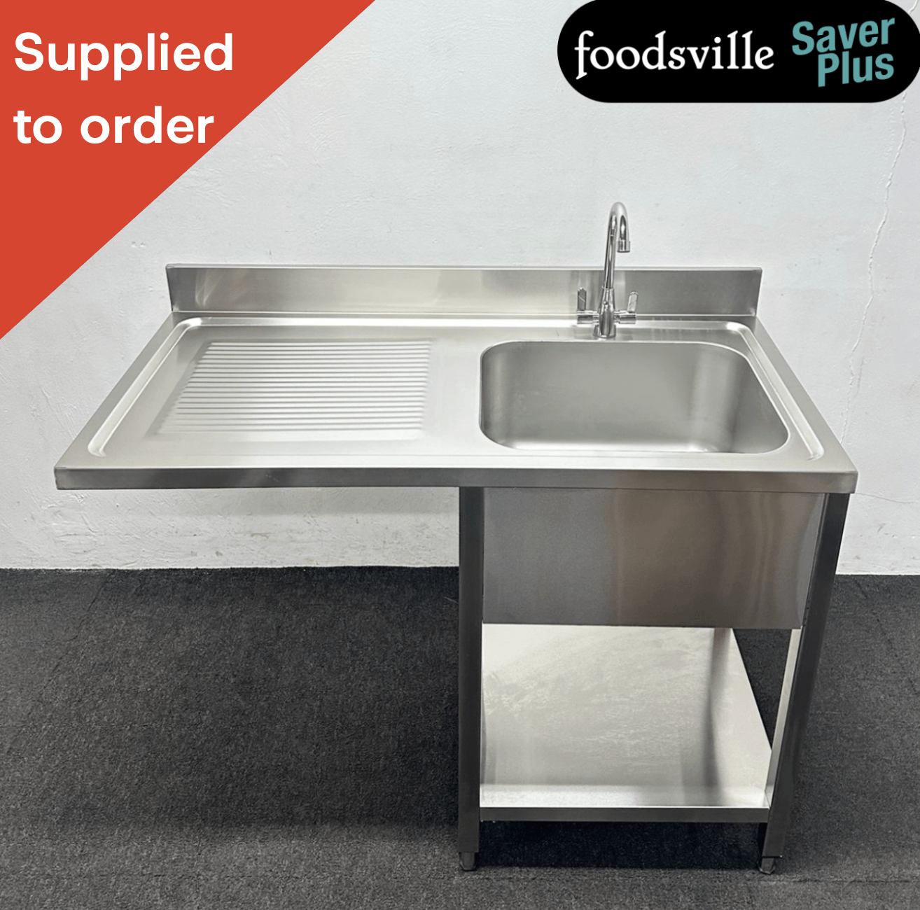 NEW Foodsville Saver Plus 1200mm Stainless Steel Single Bowl Dishwasher Sink, With Undershelf – Left Hand Drainer. Includes Taps!