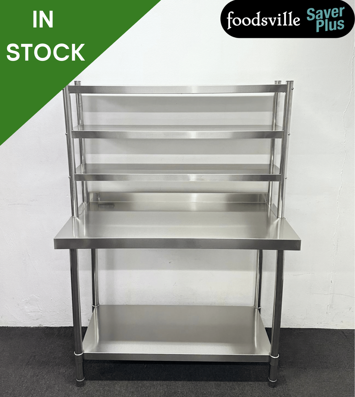 NEW Foodsville Saver Plus 1200mm Stainless Steel Wall Table With Undershelf & Triple Overgantry