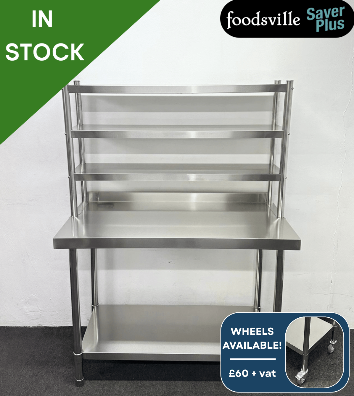 NEW Foodsville Saver Plus 1200mm Stainless Steel Table With Undershelf & Double Overgantry