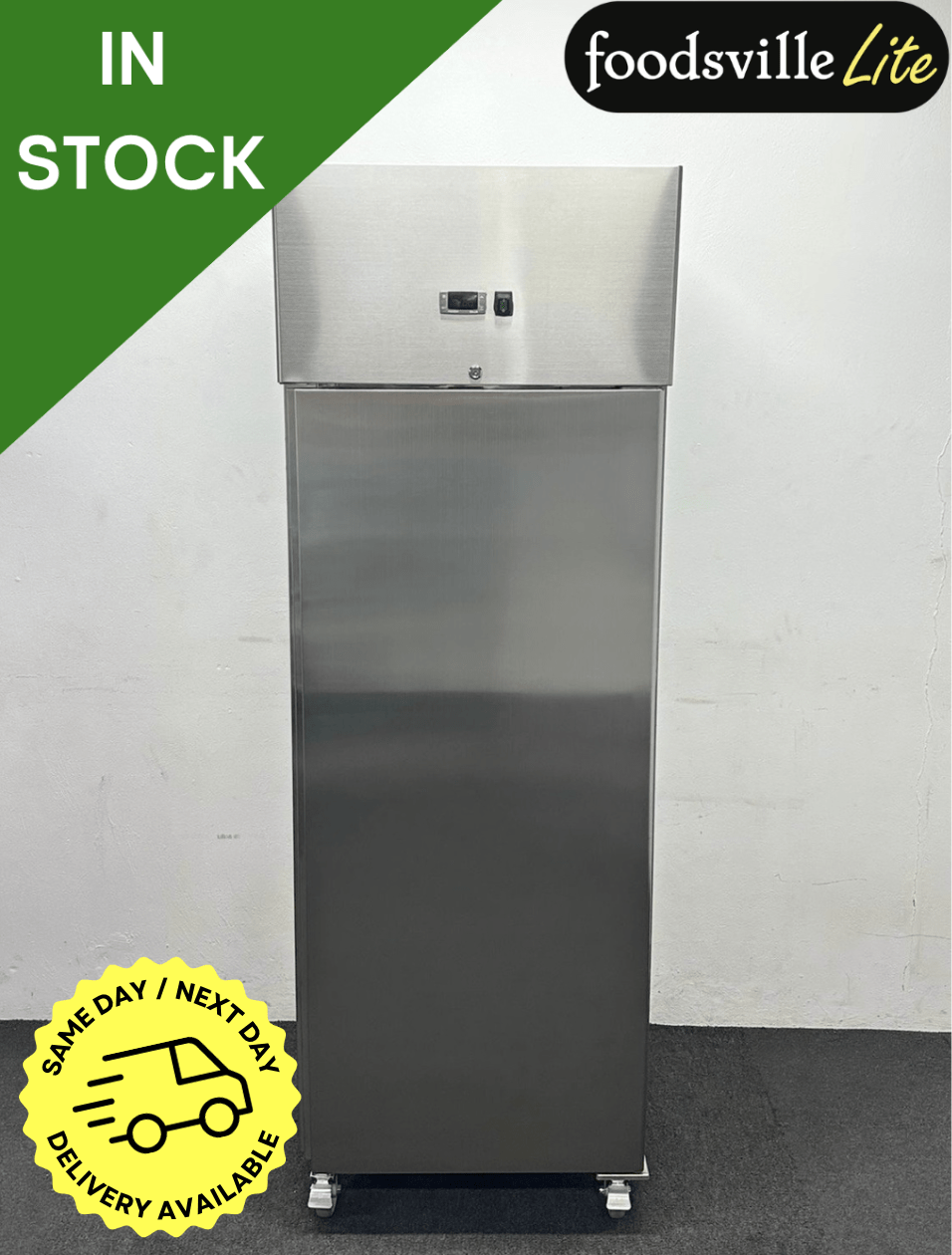 NEW Foodsville Lite Stainless Steel 600 Litre Upright Fridge On Wheels, With Digital Temperature Controller
