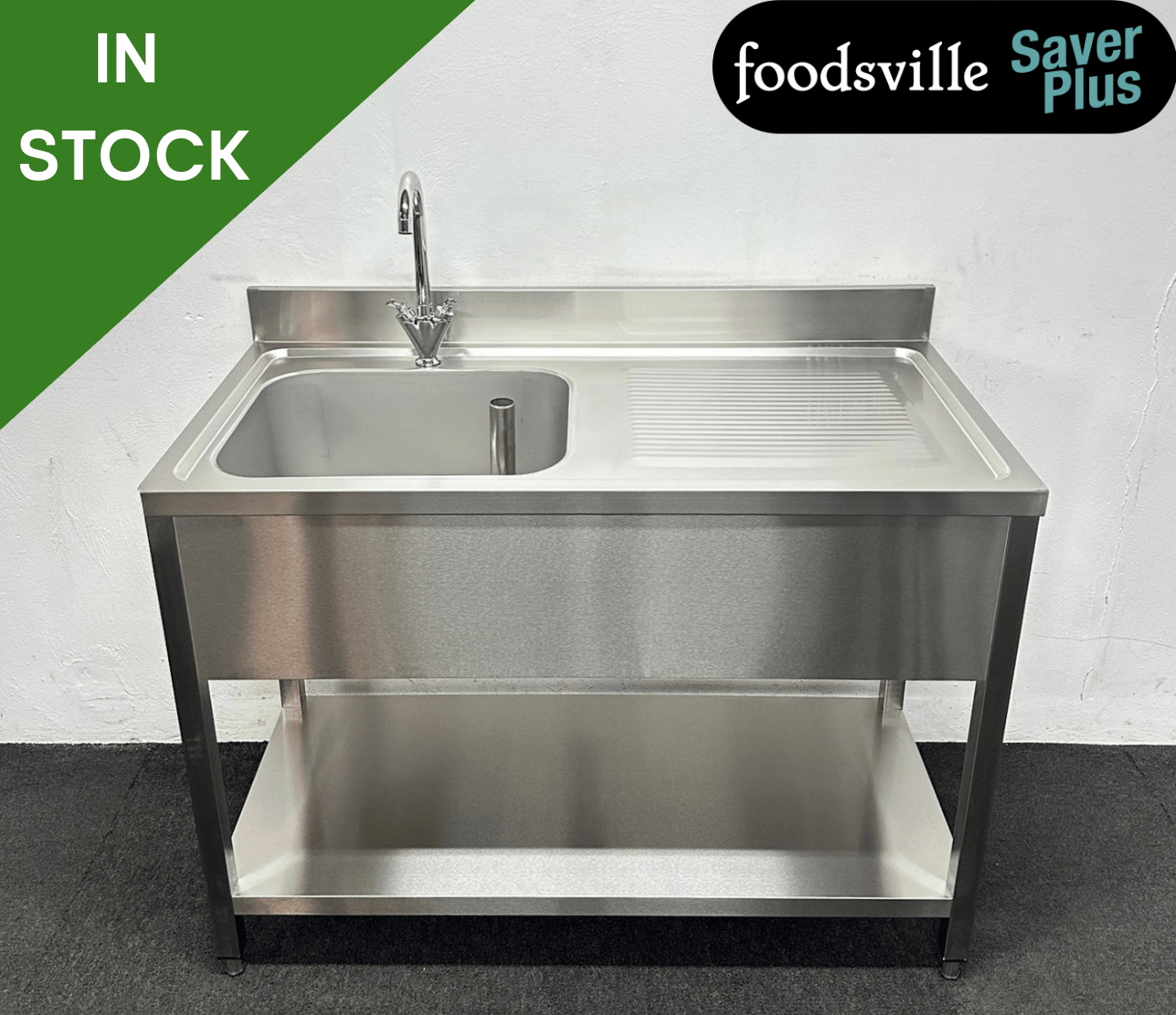 NEW Foodsville Saver Plus 1200mm Stainless Steel Single Bowl Sink With Undershelf – Right Hand Drainer. Includes Taps!