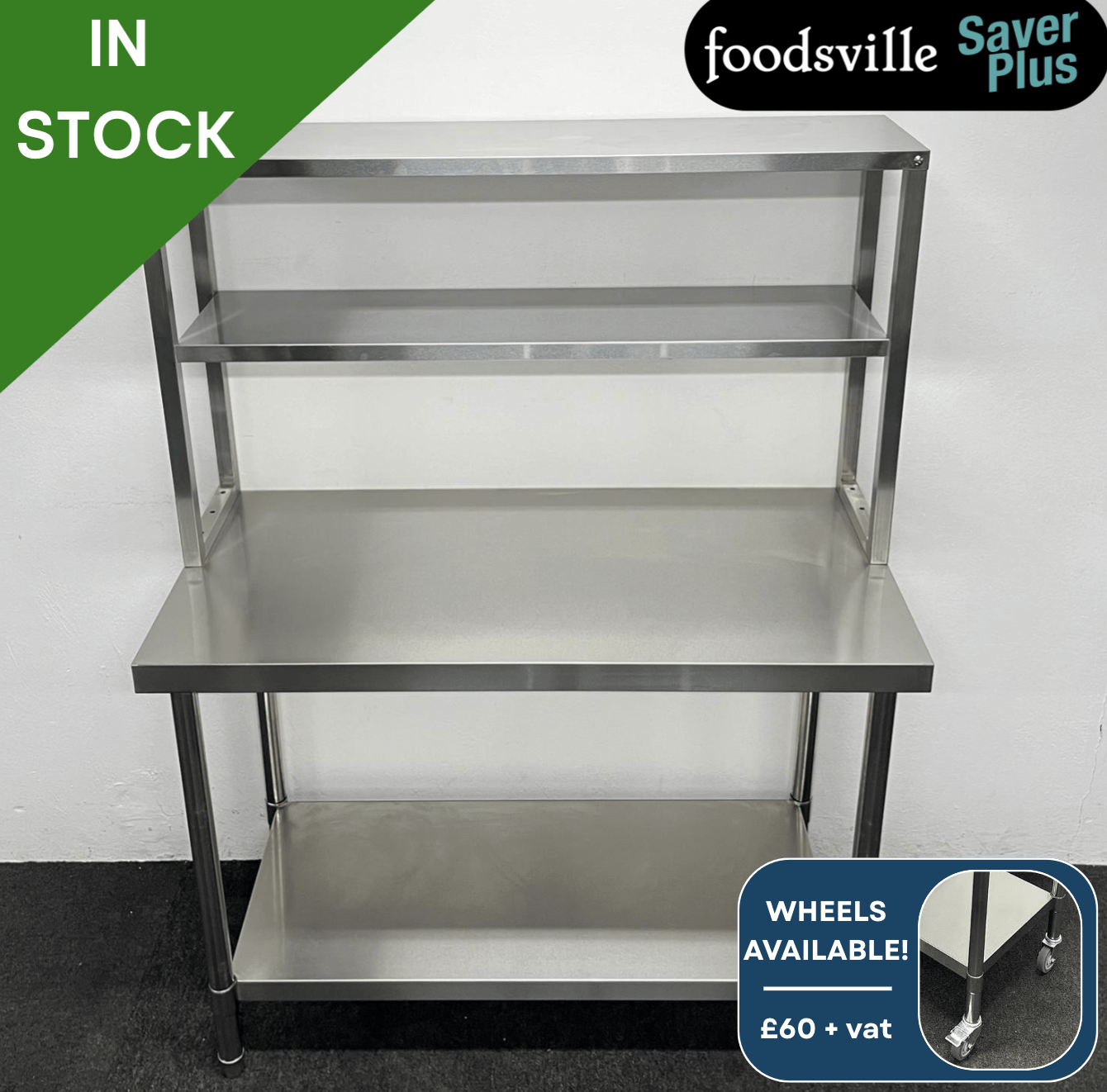 NEW Foodsville Saver Plus 1200mm Stainless Steel Table With Undershelf & Double Overgantry