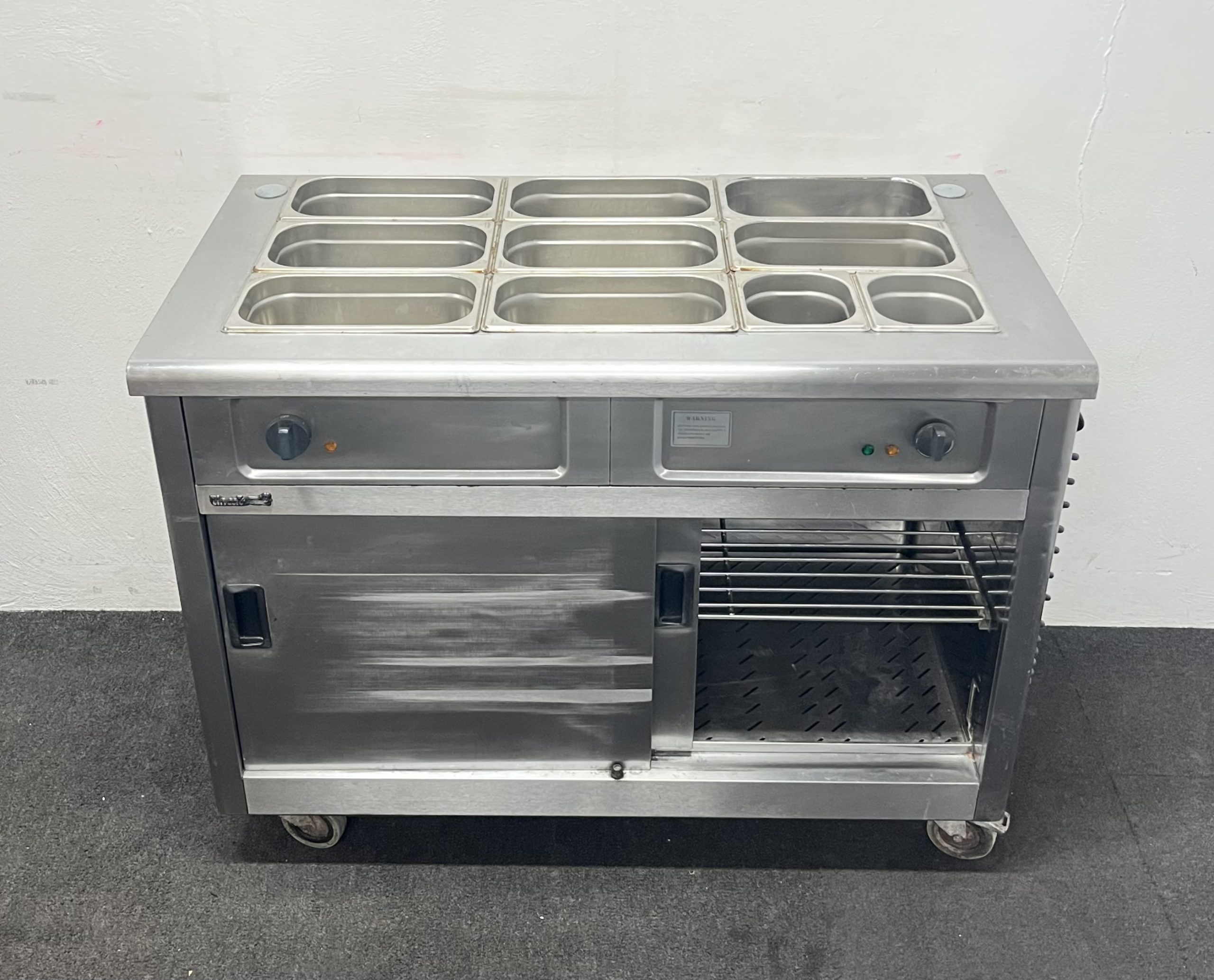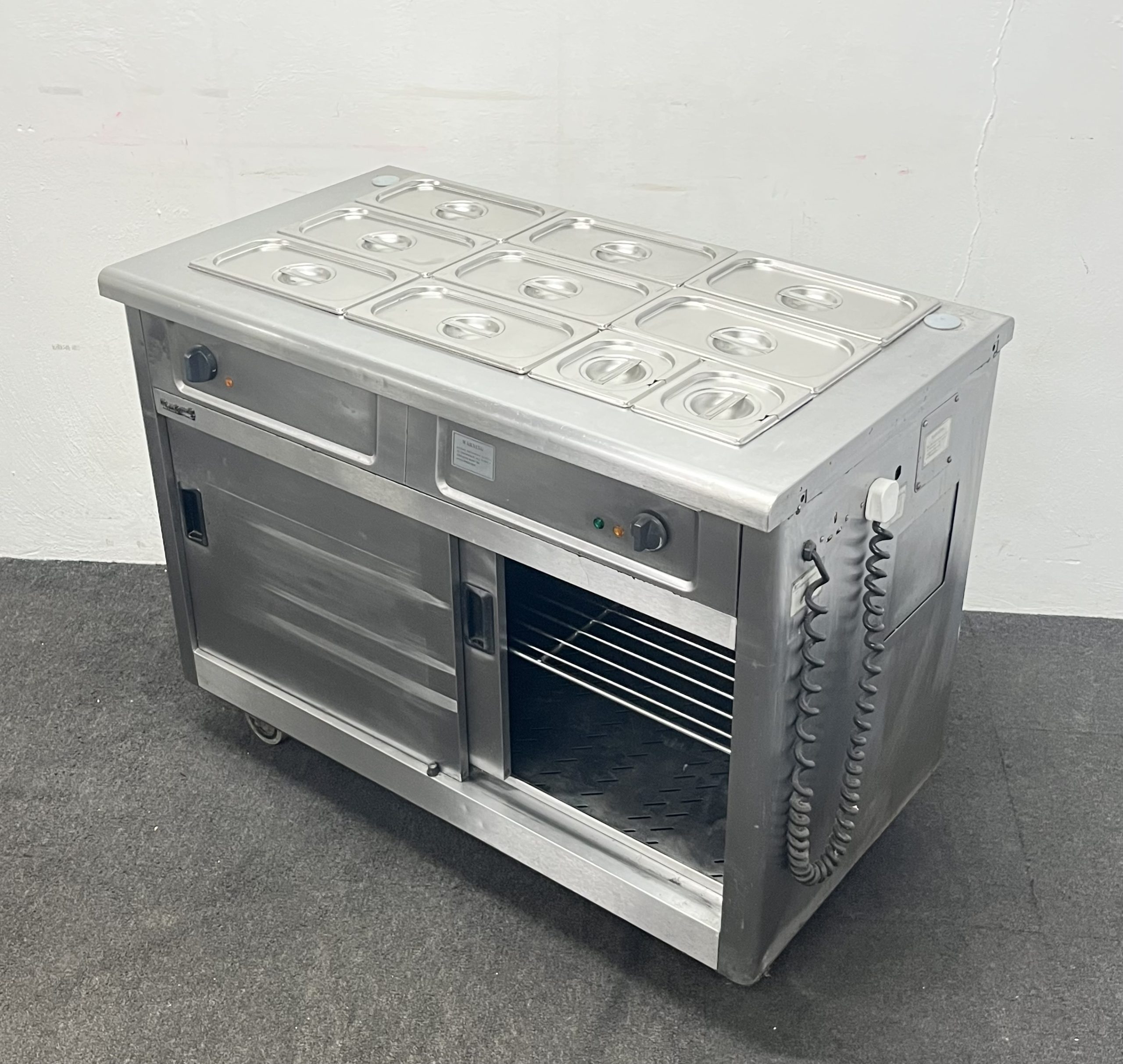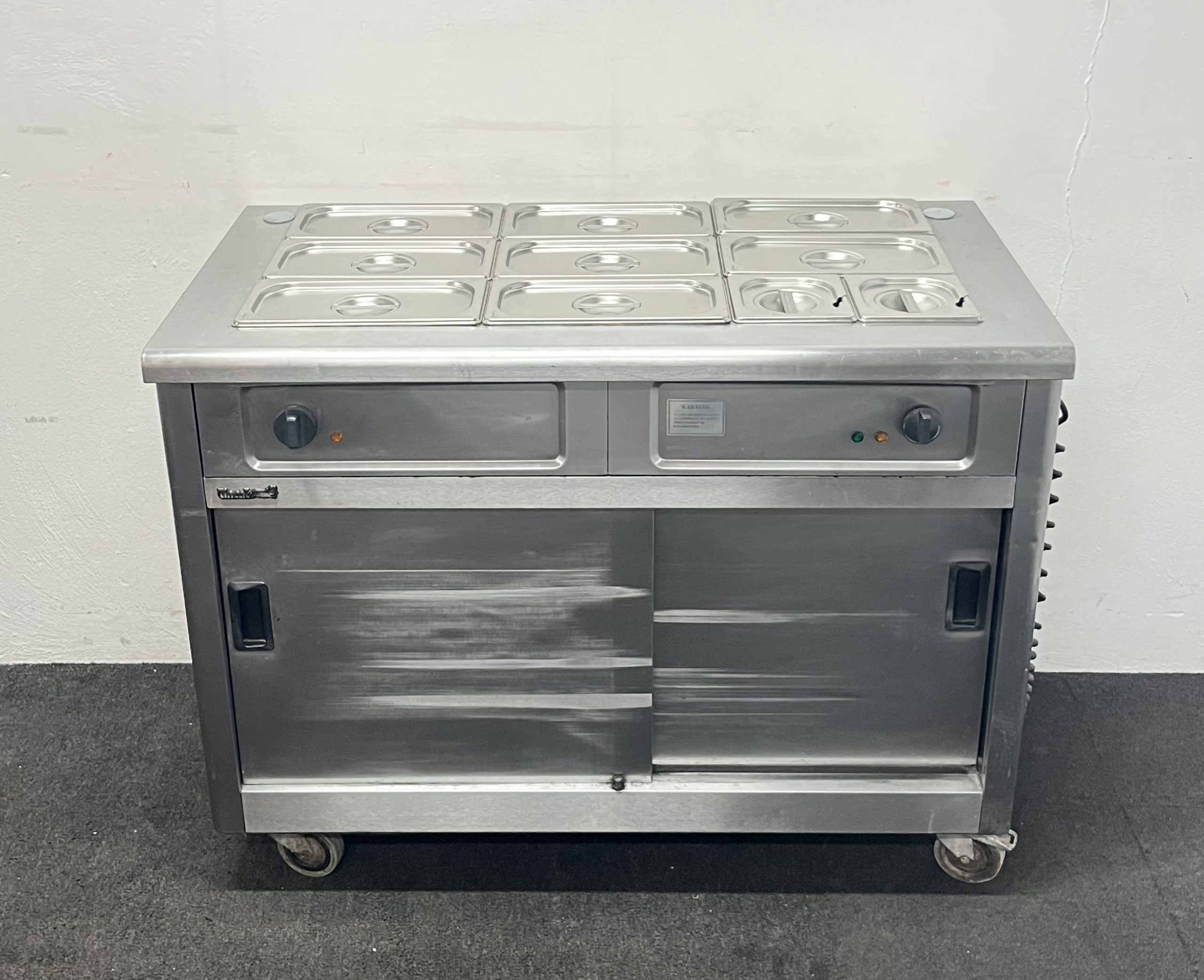 SuperClub Hire: Used Lincat 3 x 1/1 GN Wet Well Bain Marie & Hot Cupboard, On Wheels – 13 Amp Plug In & Go!