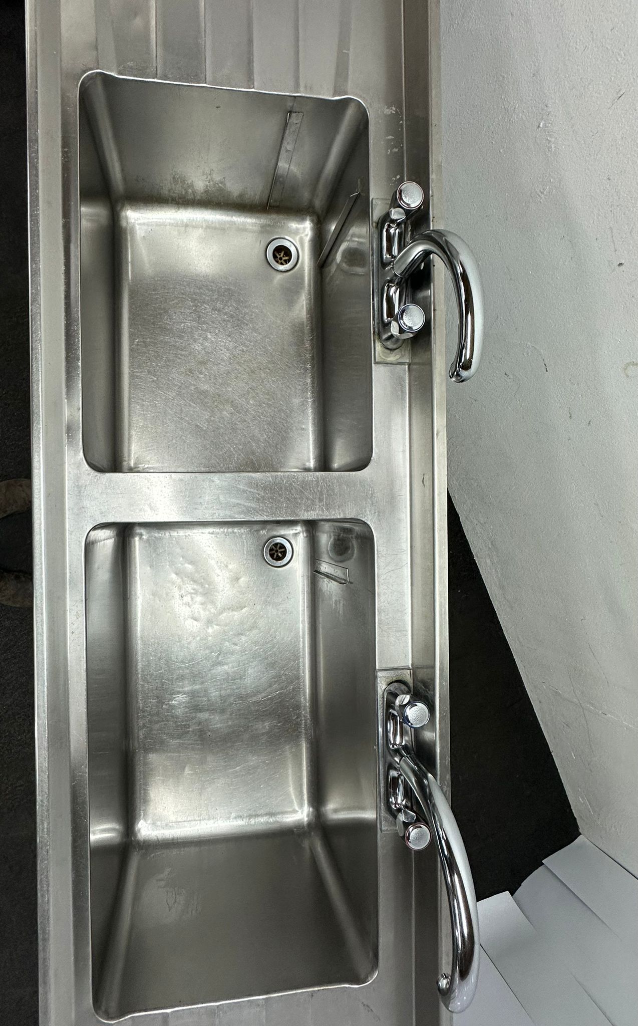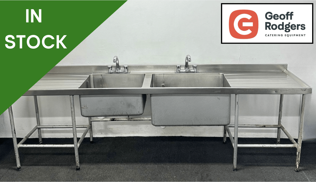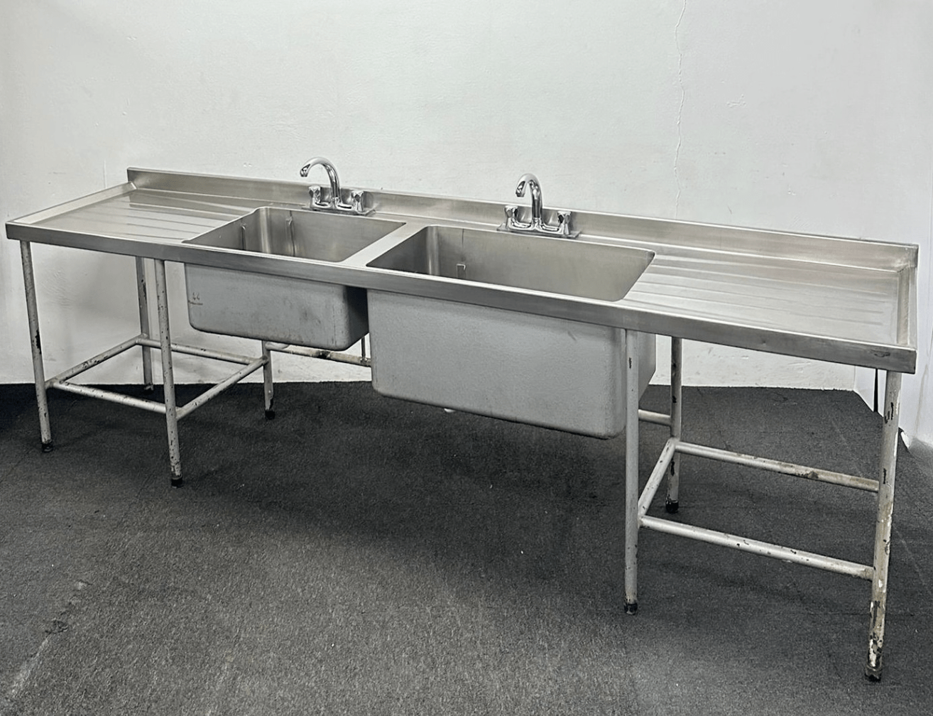 Used 2810mm Stainless Steel Double Bowl Sink – Double Drainer. Includes Taps!