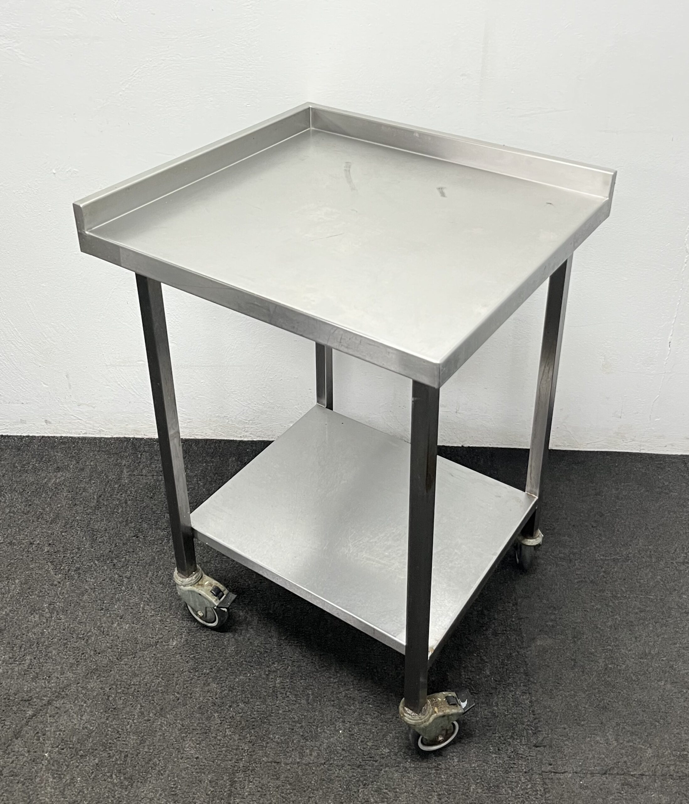 Used 700mm Stainless Steel Corner Table With Undershelf, On Wheels