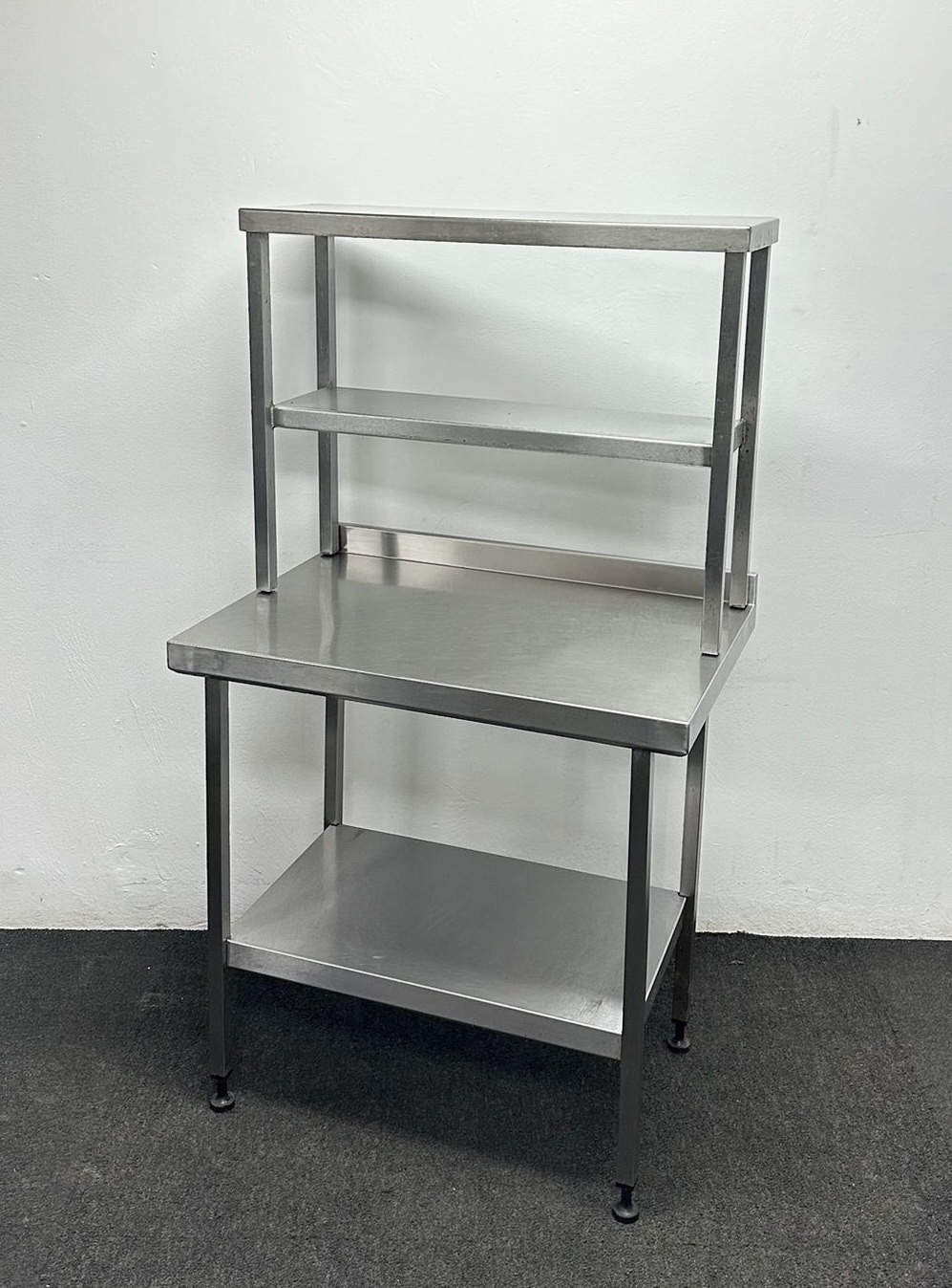 Used 900mm Stainless Steel Wall Table With Undershelf & Double Overgantry