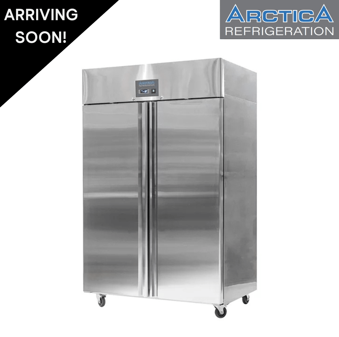 Used Arctica 1240L Double Door Upright Stainless Steel Freezer, On Wheels