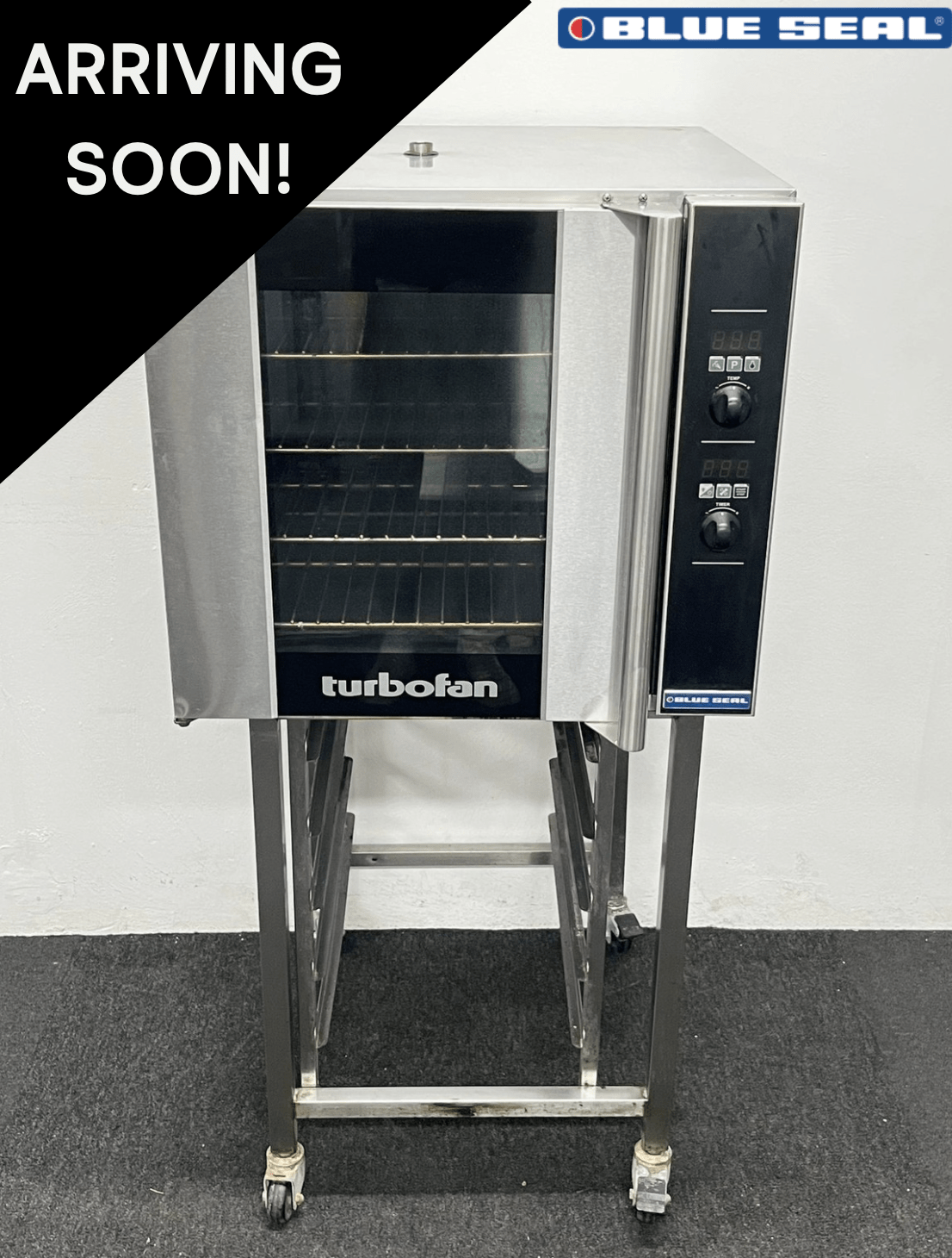 Used Blue Seal Turbofan E32 Convection Oven, On Mobile Stainless Steel Stand – 3 Phase Electric
