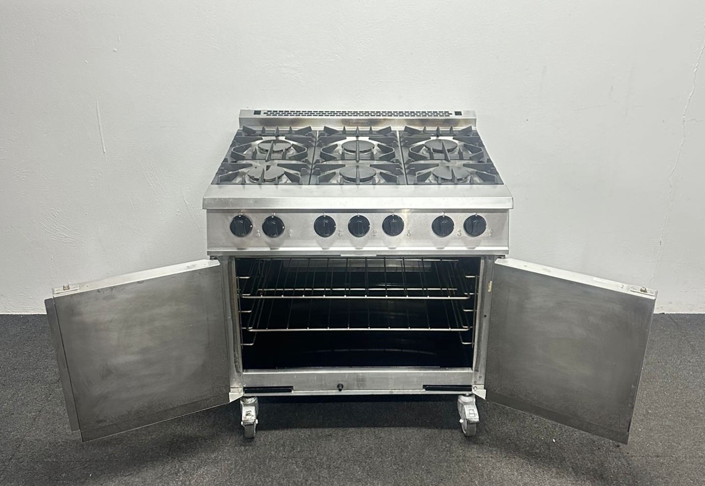 Used Falcon Dominator 900mm Stainless Steel 6 Ring Cooker With Oven, On Wheels – Natural Gas