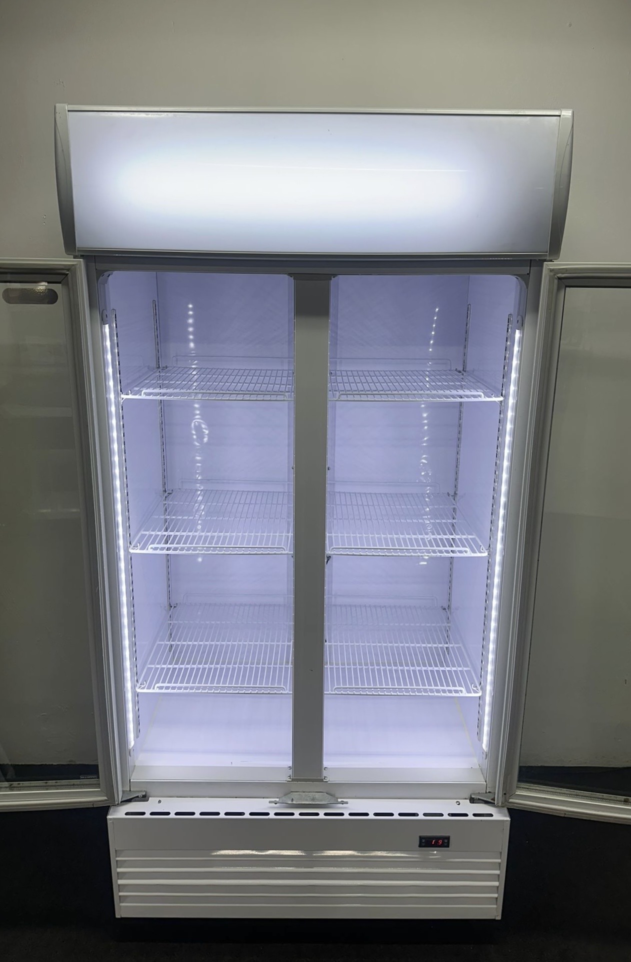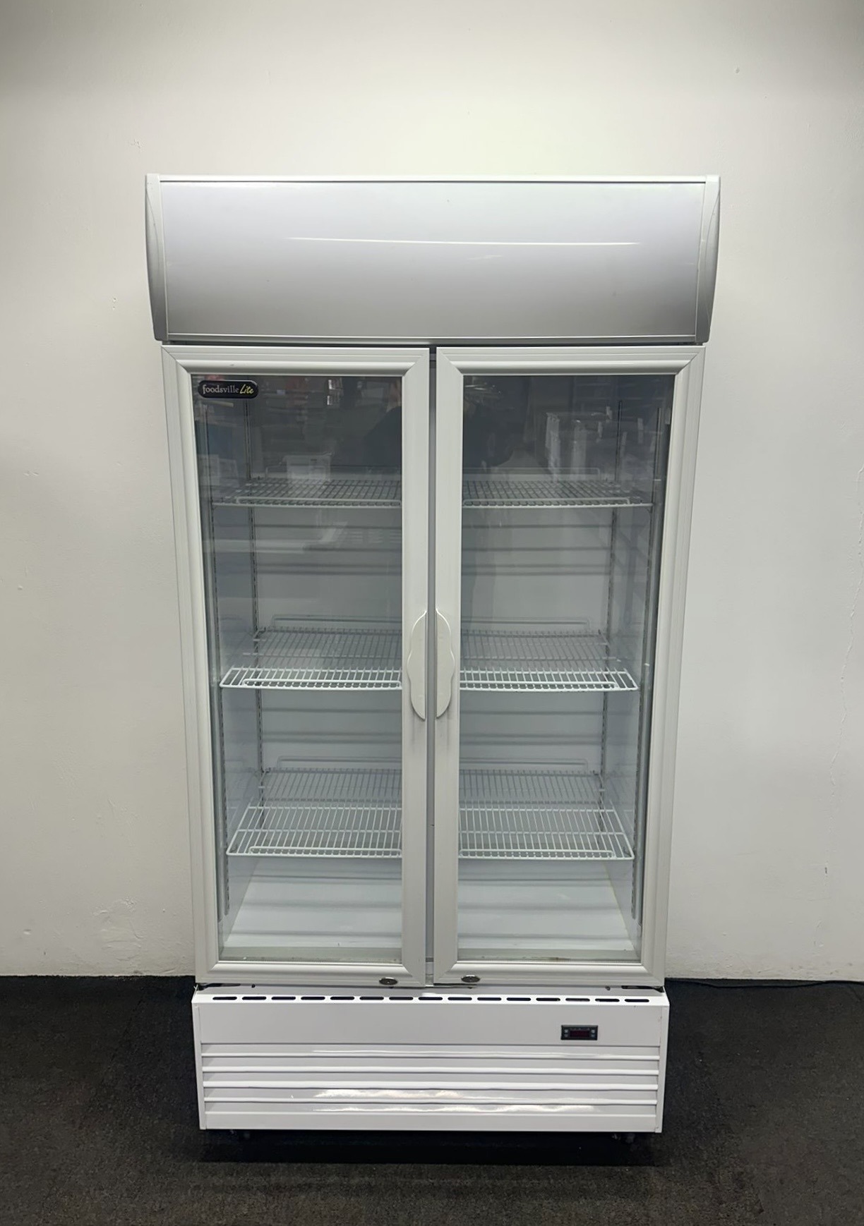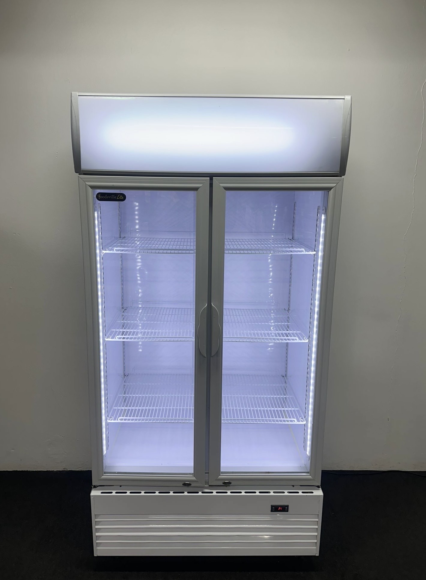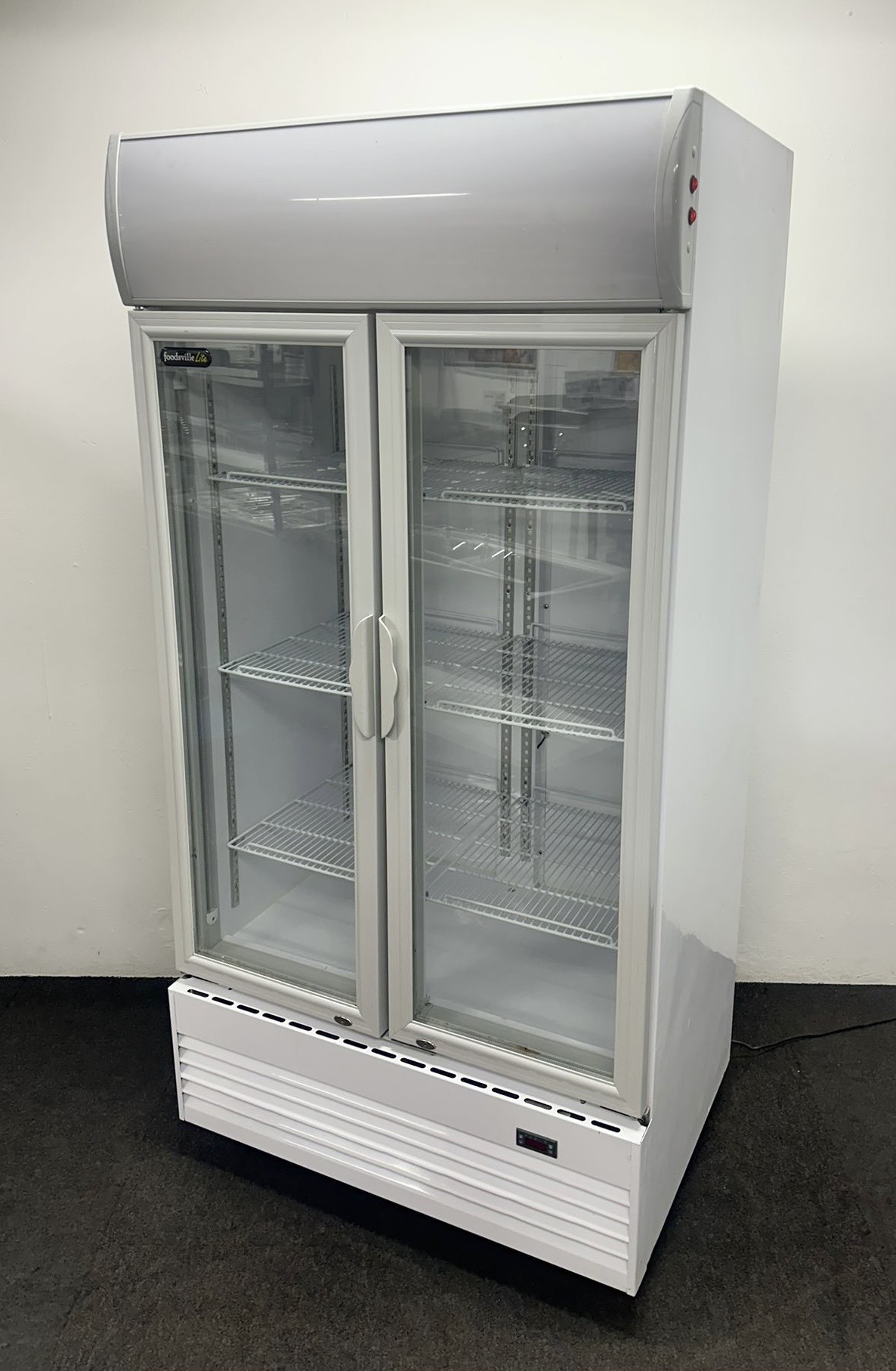 Used Foodsville Lite 1000mm Upright Double Glass Fronted Display Fridge, On Wheels