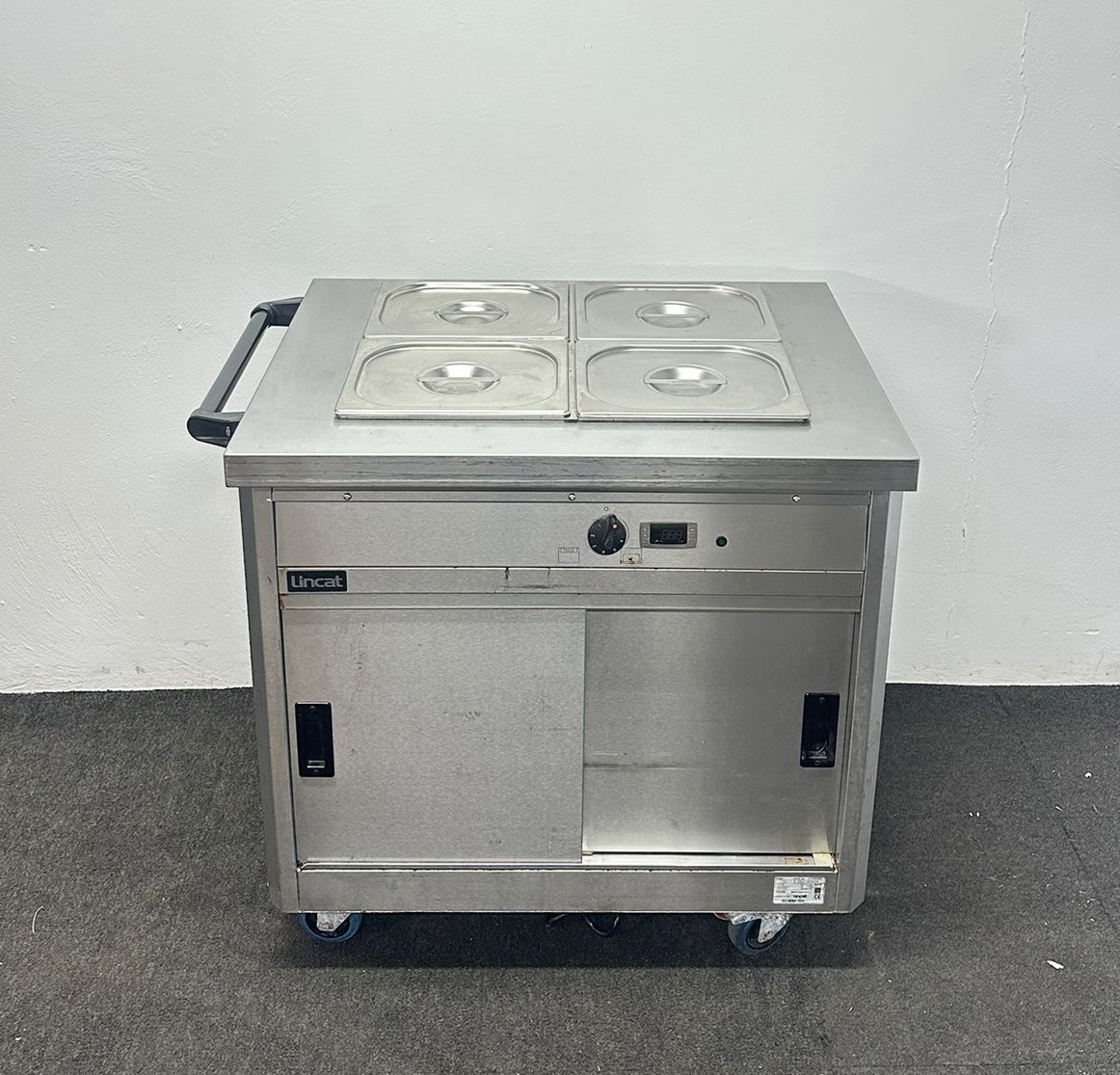 Used Lincat 2 x 1/1 GN Wet Heat Bain Marie & Hot Cupboard, On Wheels
