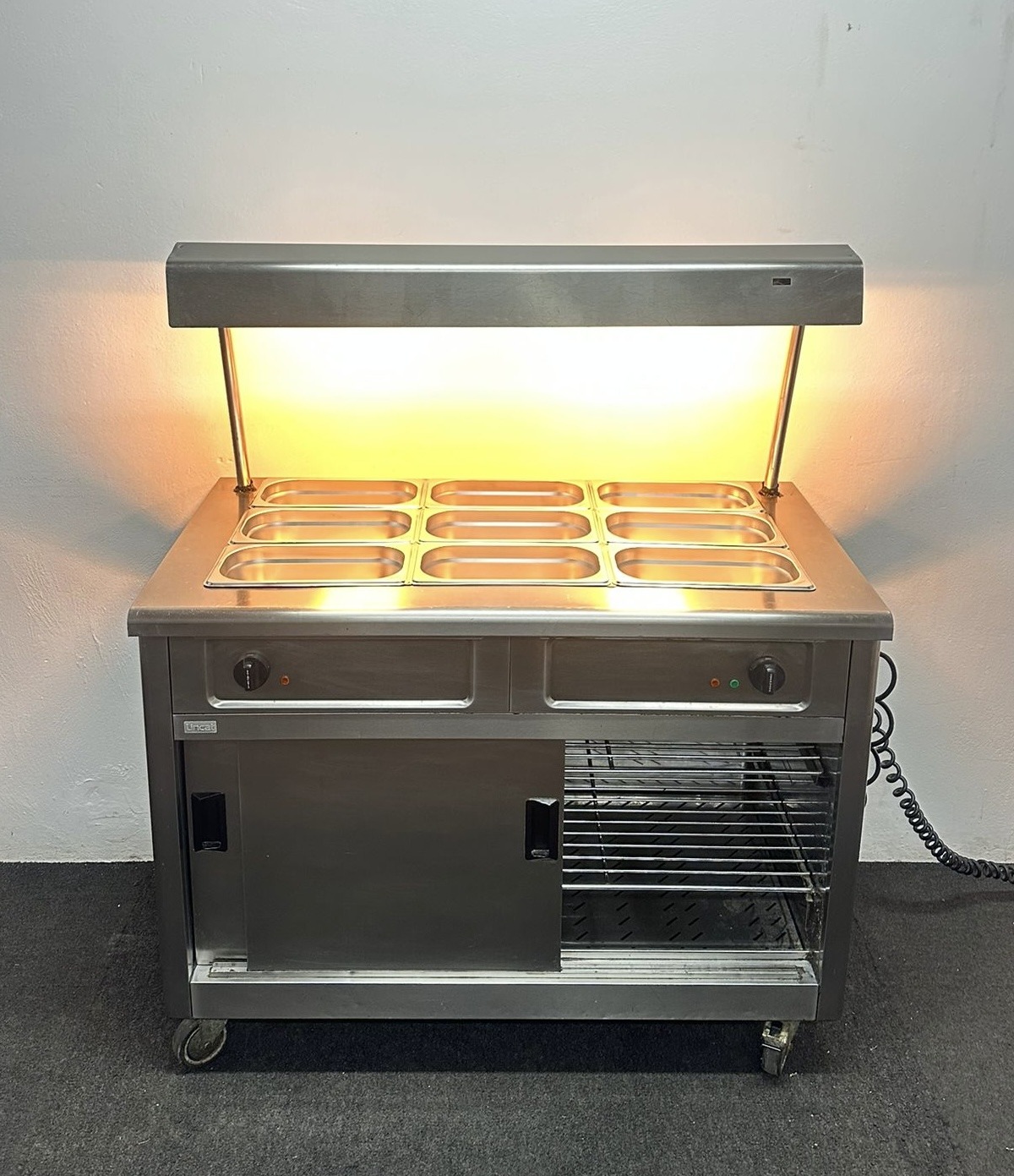 - Bain Marie: 3 x 1/1 GN up to 150mm deep, hot cupboard 6 x 1/1GN